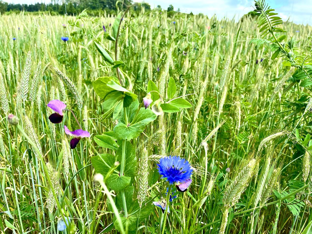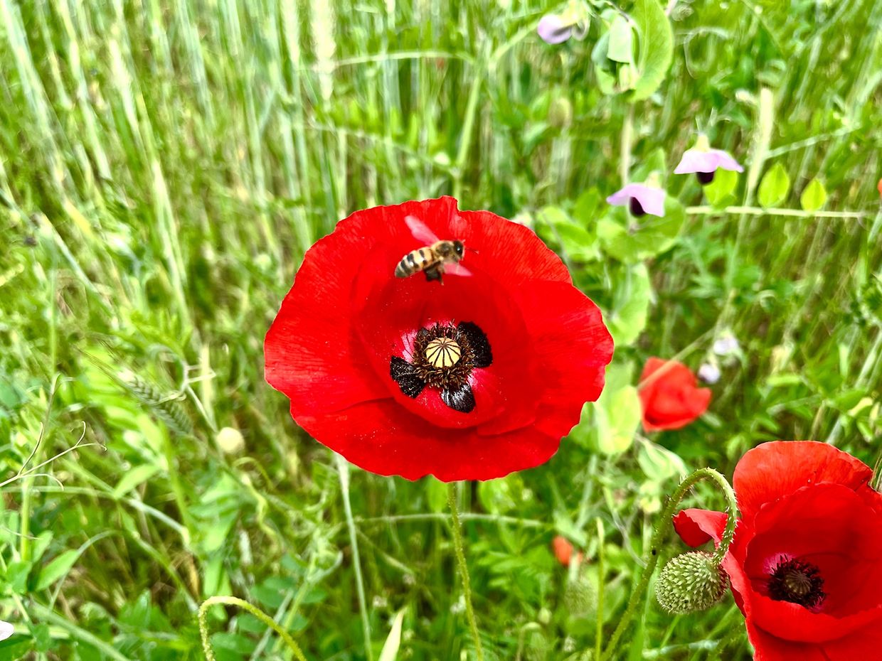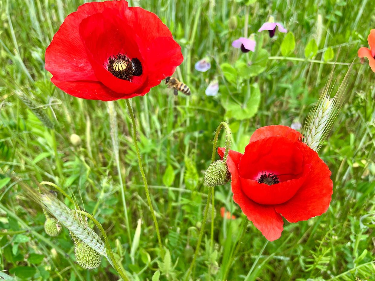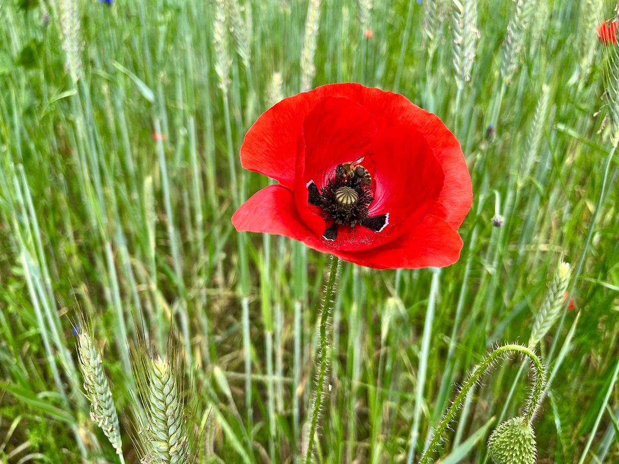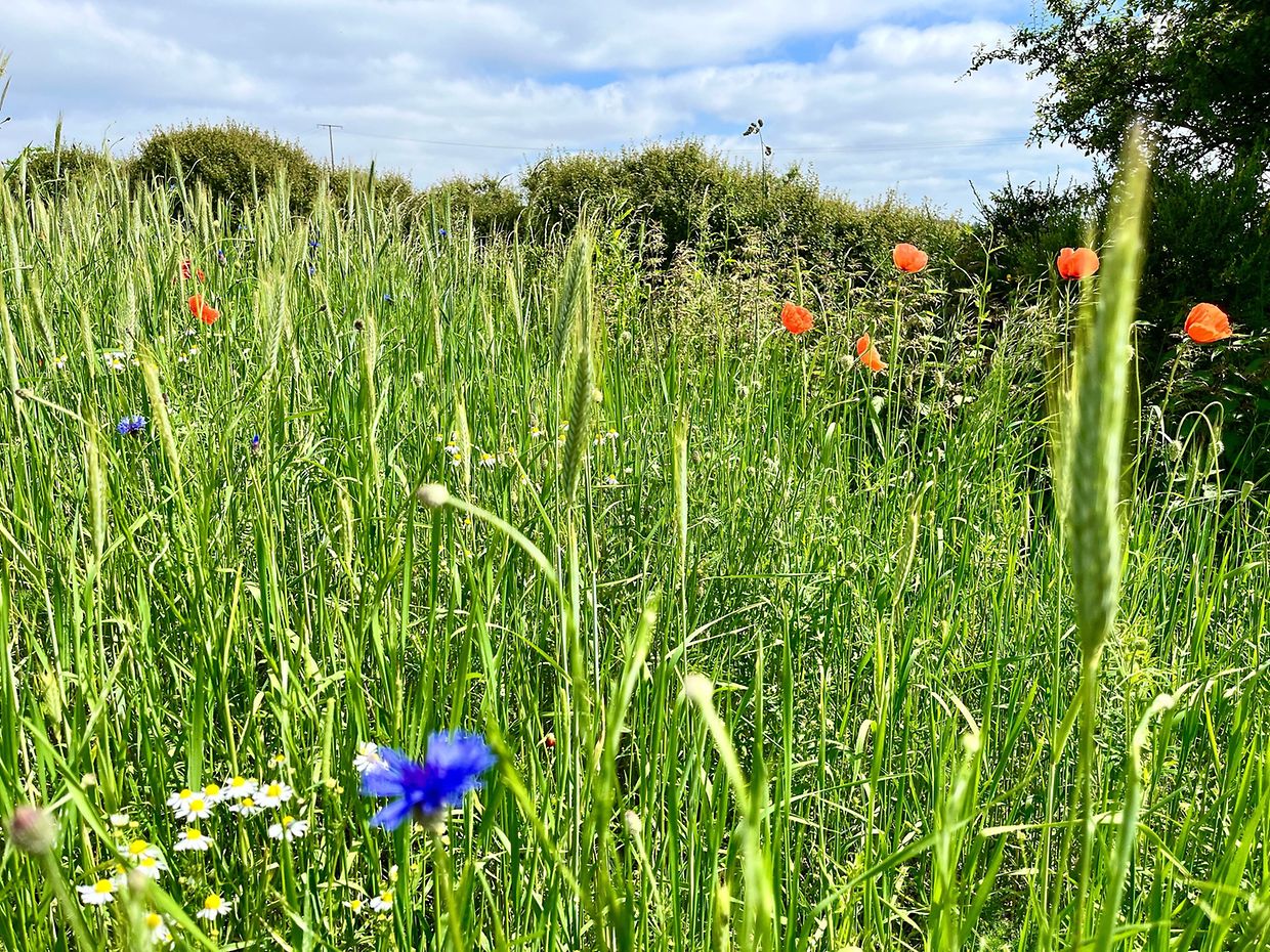 Herrliche Natur mit Klatschmohn und Kornblumen im Juni