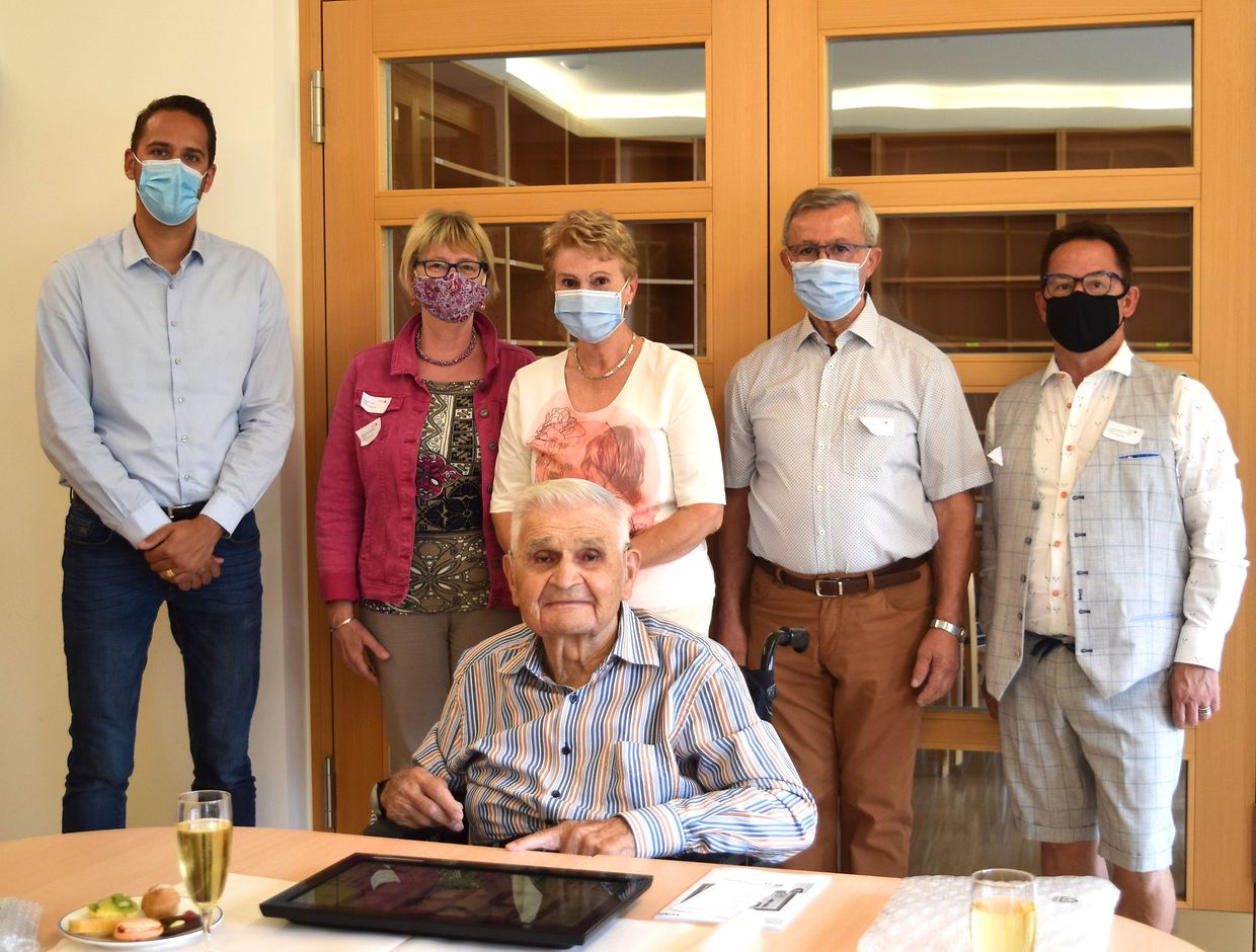 Enn Juli konnt elo endlech eng Receptioun am klengsten Krees fir des 2 Honnertjäreg organiséiert ginn, dëst mat der Famill an 2 Memberen vun der Amicale "Gëlle Joren" vum Diddelenger Altersheem. Deenen 2 Jubilaren gouf bei dëser Geleeënheet och e Kaddo vun der Amicale iwwerreecht.