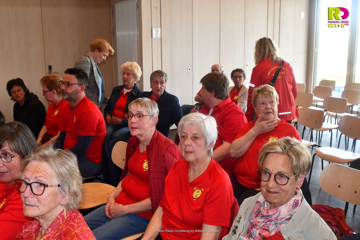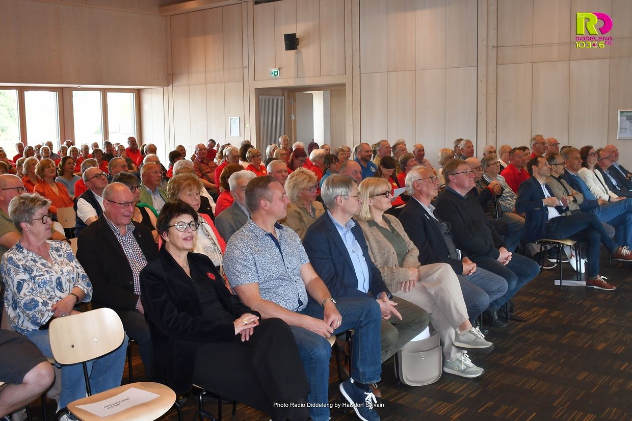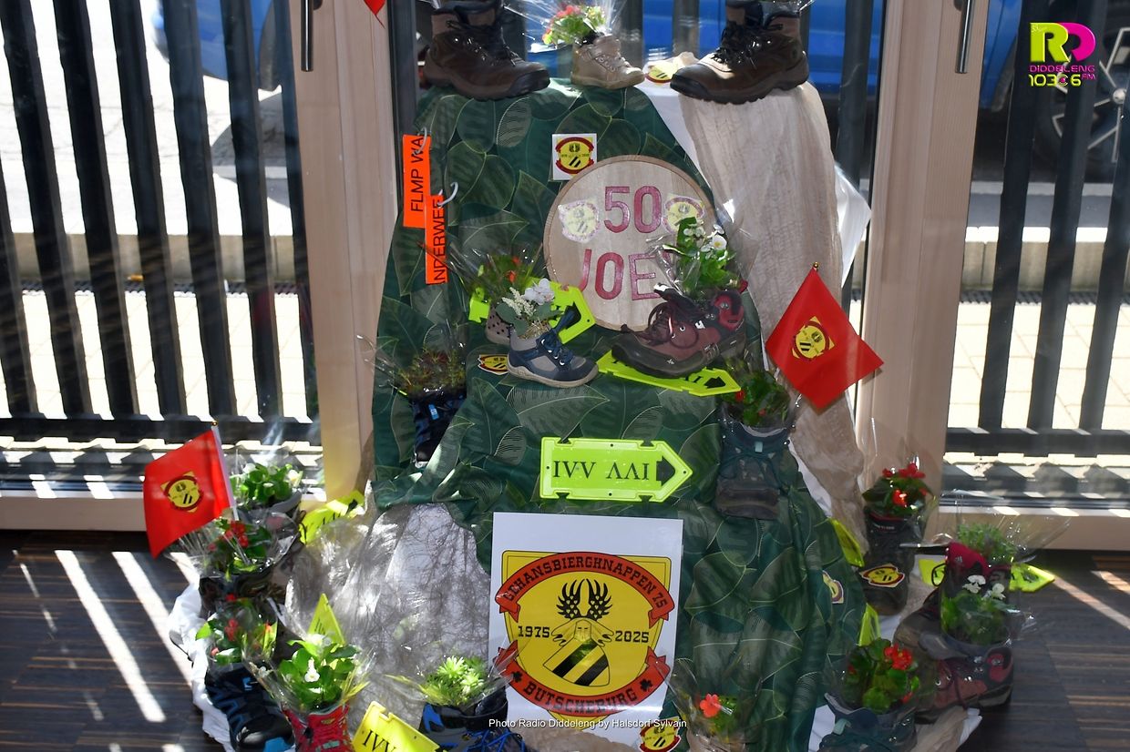 De Buergermeeschter Dan Biancalana, d’Representantë vum Gemengen- a Schäfferot, de Romain Buschmann, President vun der Lëtzebuerger Wanderfederatioun a vun IVV Europa, d’Edmée Anen vum Diddelenger Syndic, a vill aner Invitéen hunn net schlecht gestaunt iwwer de Réckbléck an déi sëllechen Aktivitéite vum Veräin an de leschte fënnef Joerzéngten. Vun der Grënnungsgeschicht iwwer gemeinsam Wanderungen, den Ënnerhalt vu permanente Wanderweeër, dem traditionellen Hierkenowend vum Veräin, Wandereuropiaden, -weltmeeschterschaften an -olympiade war alles dobäi.