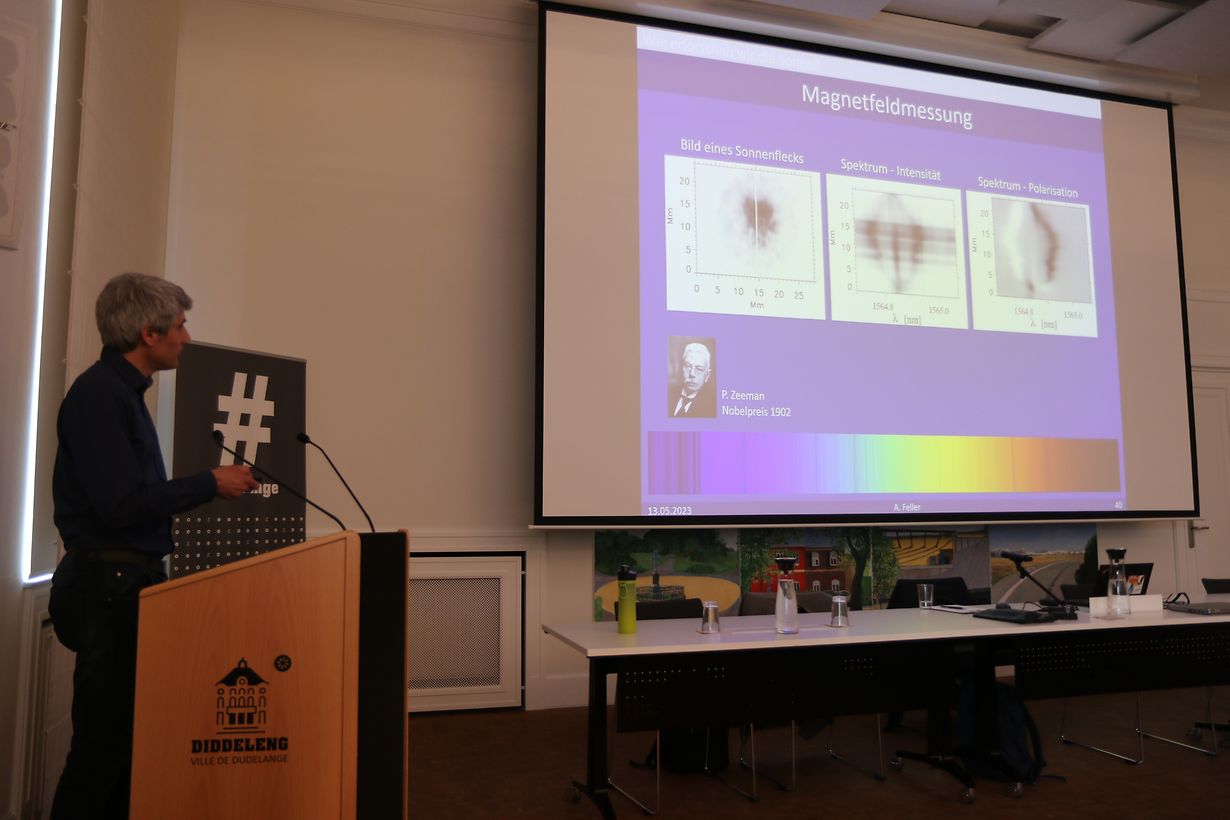 Am nächsten Tag wurde neben der Ausstellung auch eine Sonnenbeobachtung von der AAL auf dem Gemeindeplatz angeboten. Dank den guten Wetterbedingungen konnten die Besucher Sonnenflecken und Protuberanzen auf der Sonne bewundern. Dies war ein würdiger Abschluss dieses historischen Jubiläums.