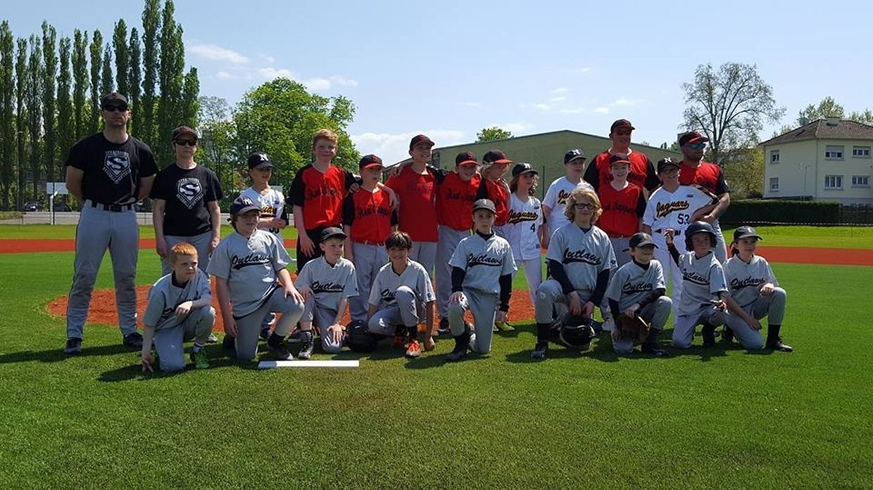 Die U12-Spielgemeinschaft der RED SAPPERS Düdelingen / JAGUARS Nancy mußte am dritten Doppelspieltag des französischen Championnat Grand-Est am 7. Mai zu den OUTLAWS Strasbourg reisen, wo das erste Spiel auf dem erst 2 Wochen zuvor eingeweihten Baseballfeld mit Kunstrasen im Schatten des EU-Parlaments ausgetragen wurde und das zweite Aufeinandertreffen auf einem mit ein paar einfachen Handgriffen für Baseball hergerichteten nahe gelegenen Kunstrasen-Fußballfeld. Dank gebührt den zahlreich mitgereisten Eltern, aber auch den OUTLAWS und ihrer fabelhaften und reibungslosen Organisation des Spieltages.