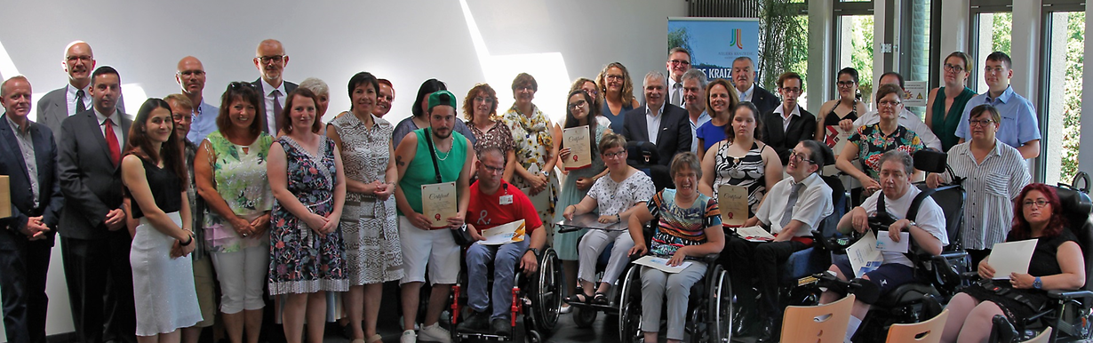 Depuis quarante ans, la Fondation Kräizbierg propose des formations aux personnes en situation de handicap. Cette année, 9 d’entre elles se sont vues remettre des mains de Madame la Ministre, de Monsieur le Ministre et de Monsieur le Président, le certificat entérinant la fin de la formation.