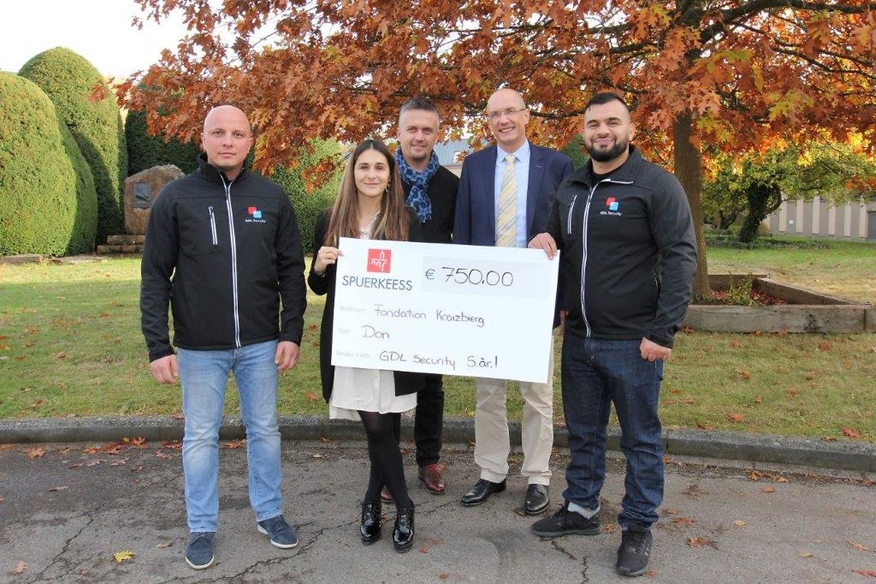 Im Rahmen einer kleinen Feierstunde konnte der Geschäftsführer der „GDL Security S.à.r.l.“ Ardian Paçarada einen Scheck in Höhe von 750 Euros an Tom Wagner, Direktor der Stiftung Kräizbierg in Düdelingen überreichen.