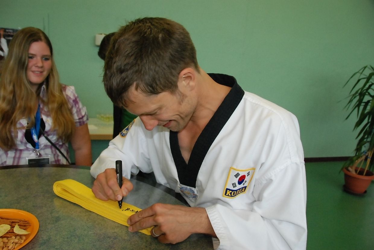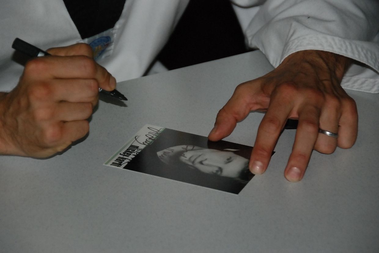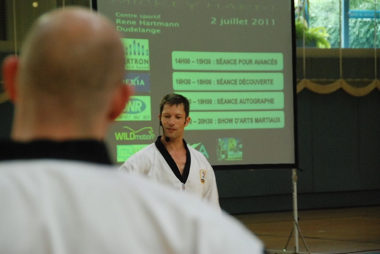 Mywort.lu verloste gemeinsam mit Radio DNR, jeweils drei Meet an Greets. Mickey signierte den Gewinnern einen Taekwondo-Gürtel und plauderte aus dem Nähkästchen der Schauspielwelt. Ausserdem wurde heute der offizielle und erste „Mickey Hardt Fanclub Letzebuerg“ dem Publikum vorgestellt.