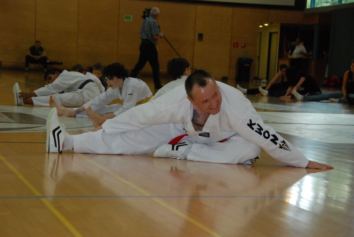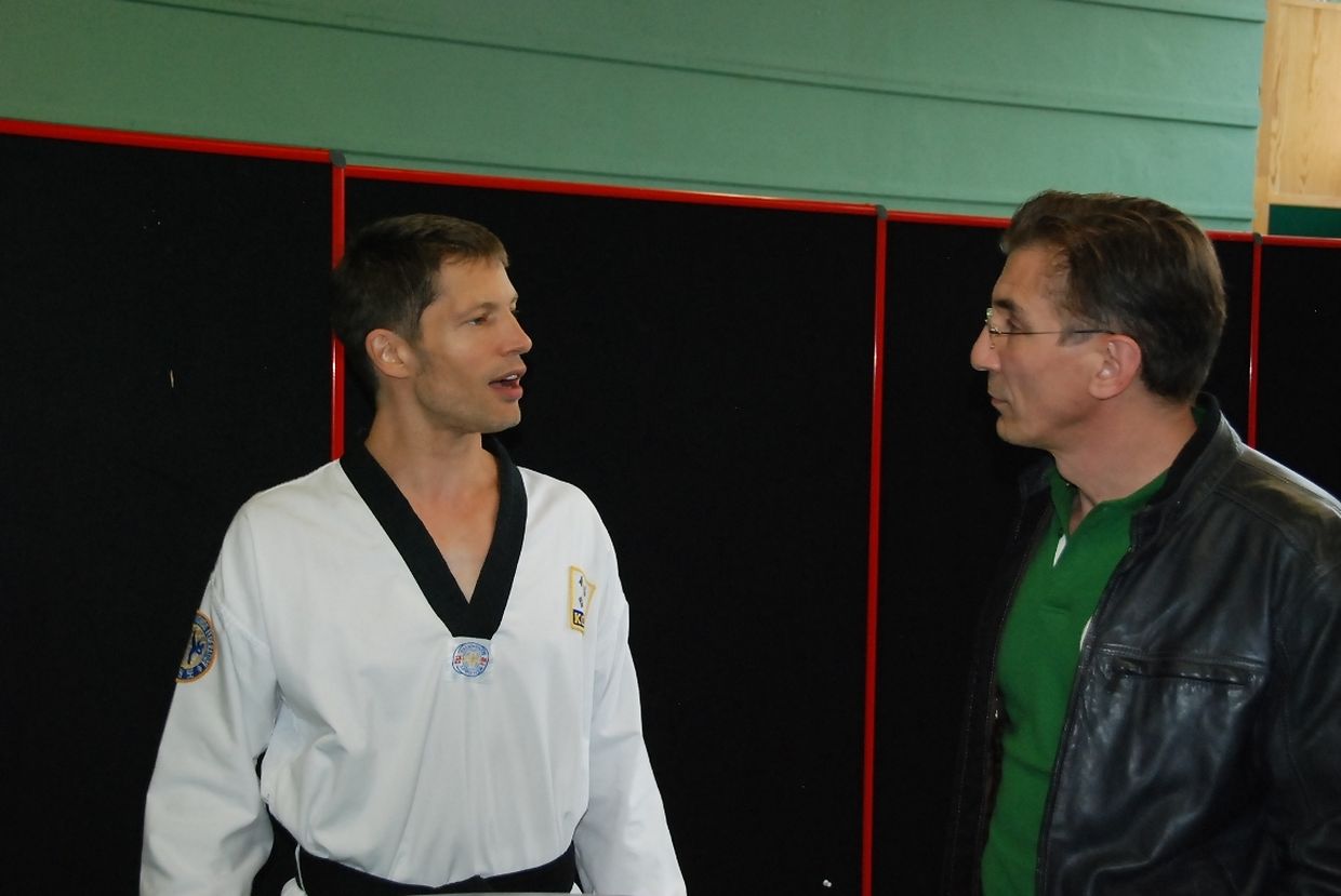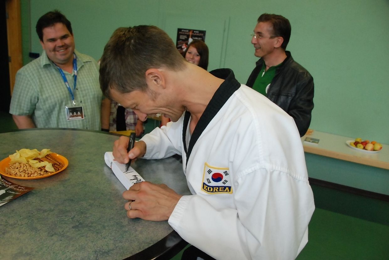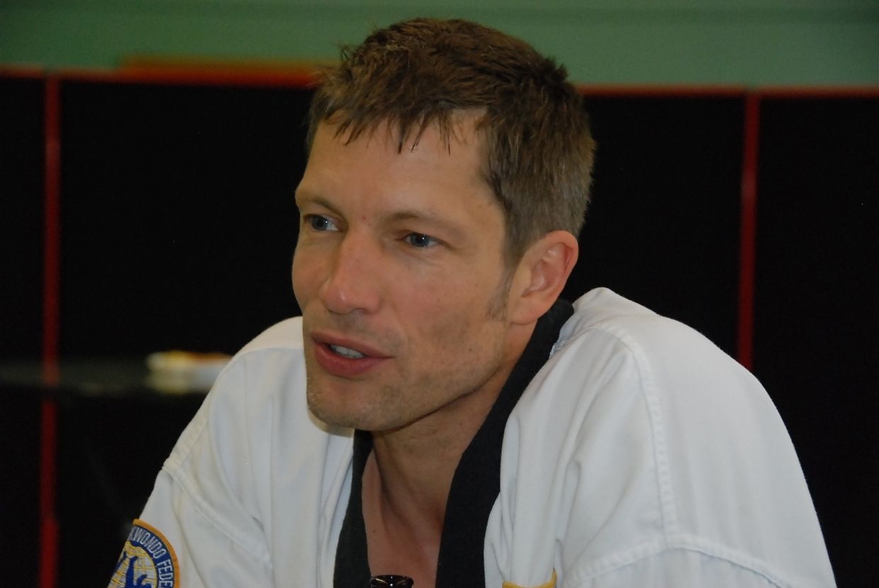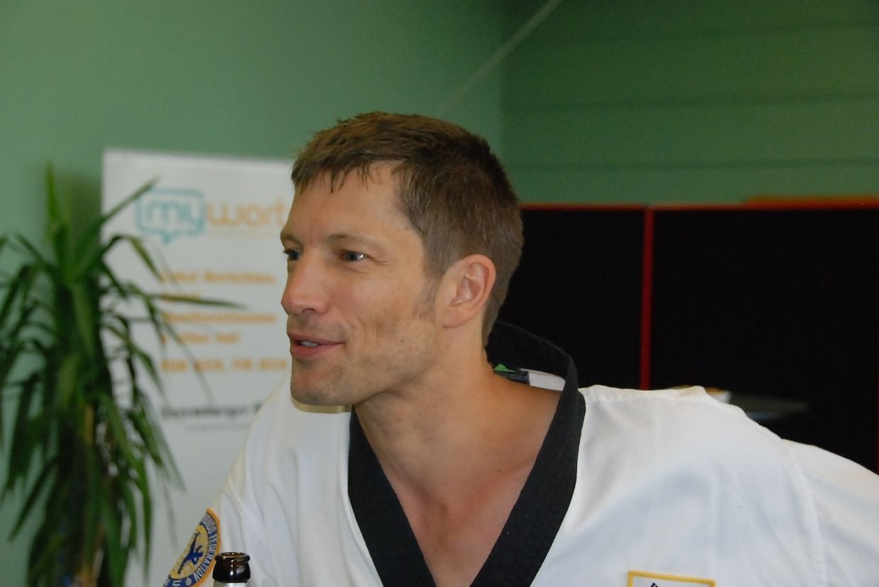 Es wurde aber nicht nur zugeschaut, man konnte auch aktiv an der Veranstaltung teilnehmen. Um 14 Uhr begrüsste der Schauspieler und dreifache deutsche Meister in Savate, Mickey Hardt, die Teilnehmer zum Workshop für Fortgeschrittene. Konzentriert und diszipliniert, so wie es auch in diesem Sport zugeht, hörten sie dem Star aufmerksam zu.