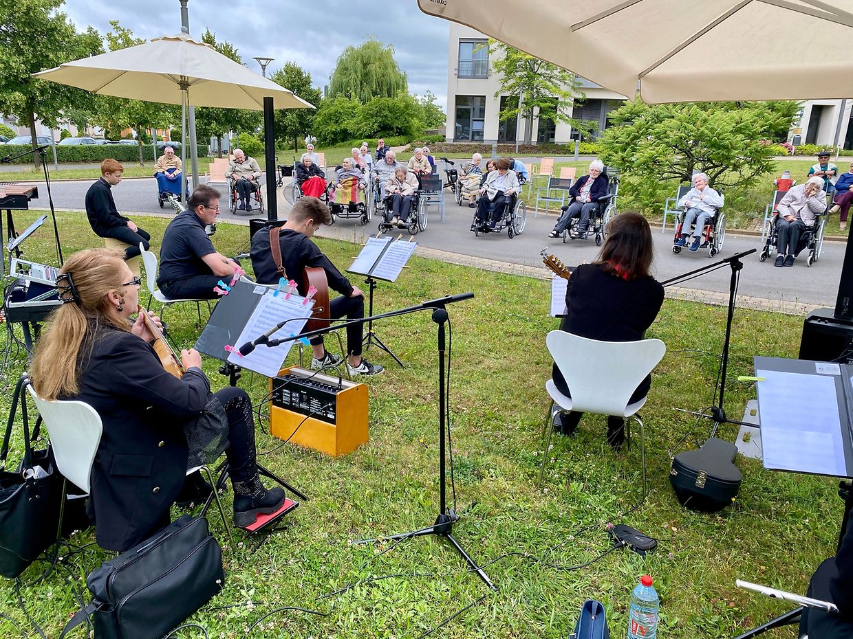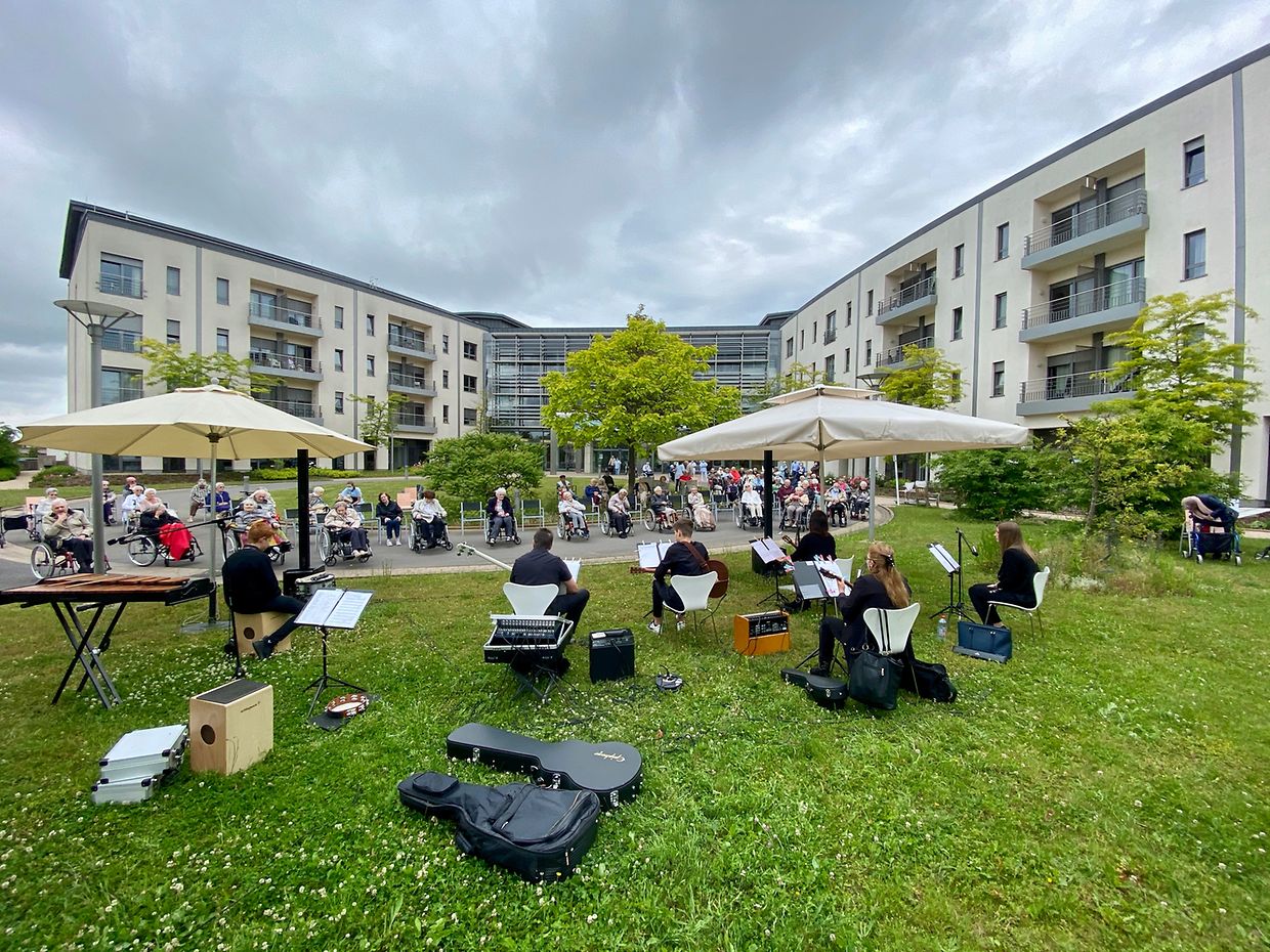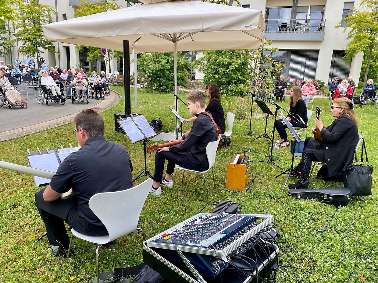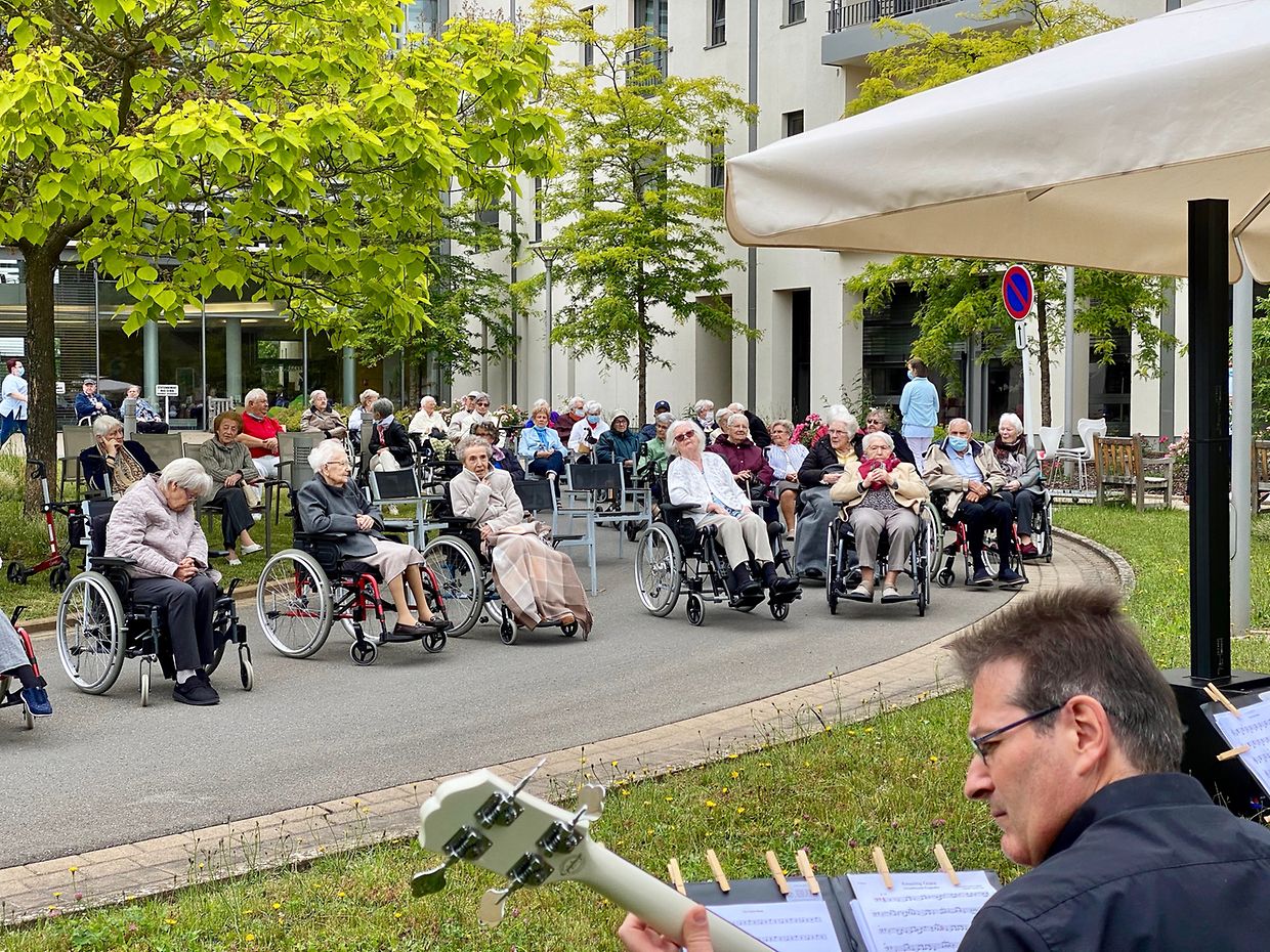 Auf Einladung der Amicale des CIPA Düdelingen, spielte das Musikensemble Divertimento unter der Leitung von Isabelle Merlevede zum Muttertagskonzert im Vorhof des CIPA Düdelingen auf. Fast alle Bewohner des Seniorenheims hatten sich trotz kühlen Temperaturen vor dem Haupteingang des Hauses eingefunden um die musikalische Reise zum Muttertag mit den Musikern des Ensembles Divertimento zu geniessen. Die Begeisterung und das Interesse waren sehr groß, da so manche bestbekannte Melodie an glückliche Erlebnisse aus der Vergangenheit erinnerte.