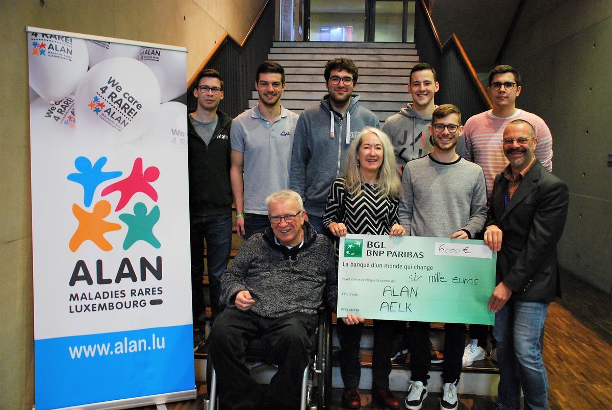 E Samschden, den 9. November 2019 huet d’ AELK, de Cercle vun de Lëtzebuerger Studenten zu Karlsruhe, en Don vu 6000€ un ALAN asbl (maladies rares luxembourg) iwwerreecht. Des Zomm gouf am Kader vun der traditioneller järlecher Vëlosheemrees (VHR) gesammelt.