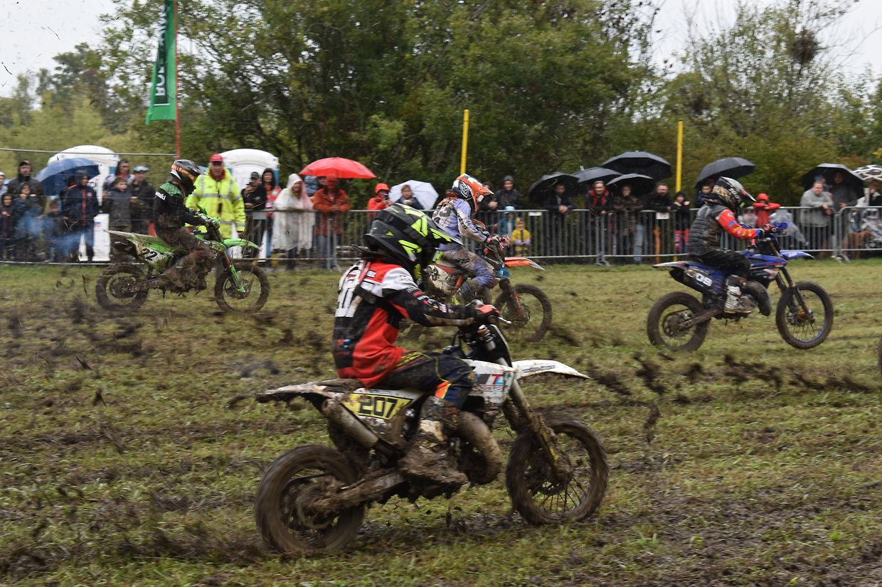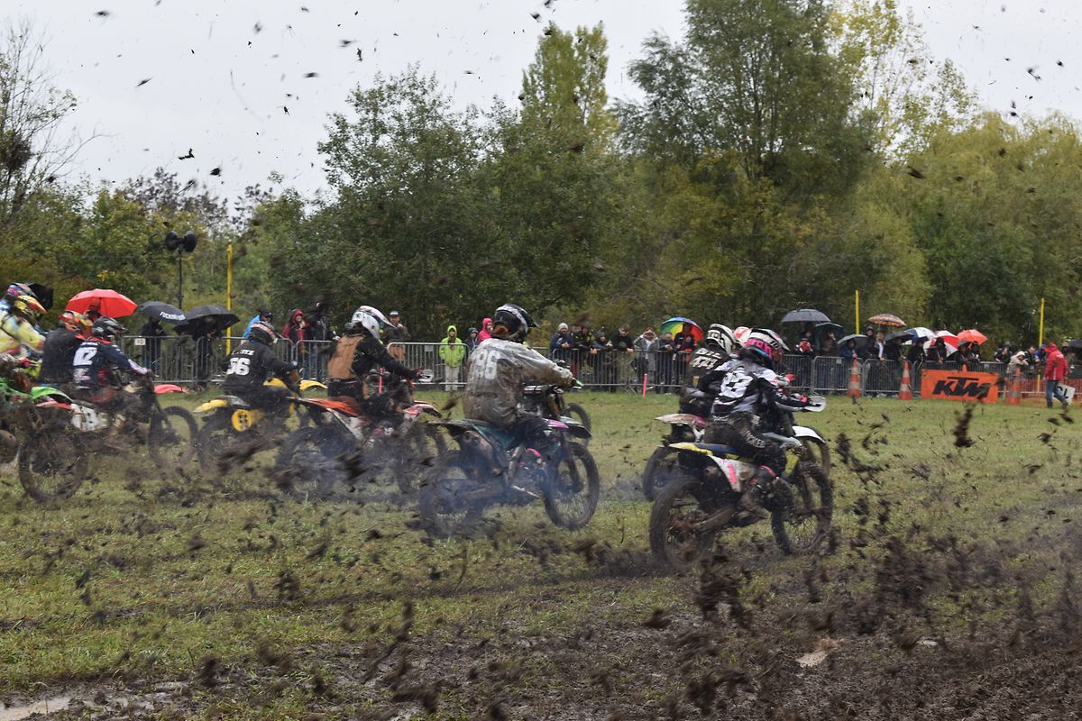 Die widrigen Witterungsbedingungen hatten das 57. Motocross der Motor-Union Schifflange zu einer Rutschpartie ausarten lassen. Von den rund 170 gemeldeten Teilnehmern aus Luxemburg, Belgien, Frankreich und Deutschland hatten am Nachmittag dann auch viele auf einen Start im ehemaligen Steinbruch Cloos in Düdelingen verzichtet. In den zwei Rennen der Master-Klassen MX1/MX2 hieß die Hackordnung auf den beiden ersten Plätzen jedes Mal Damien De Muyser (KTM SXS 450) vor David Collignon (Suzuki RM 250). Während De Muyser in der MX1-Klasse startete, ging Collignon in der Klasse MX2 ins Rennen. Vor der Siegerehrung gedachte die MUS seiner in diesem Jahr verstorbenen früheren Sportler Jean-Pierre Colbach (Champion 250ccm 1978) und Marcel Junker (Champion 50ccm 1964).