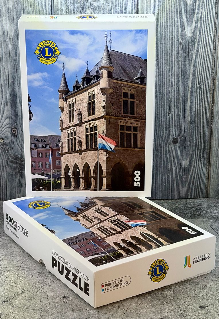 Echternach Den Lions Club Echternach präsentéiert säin Puzzle Paul Keiffer 3 Bildergalerie Bitte scrollen Sie nach unten,um weitere Bilder zu sehen. Veröffentlicht am Montag, 3. November 2025 um 15:57 Echternach, Luxemburg De Lions Club Echternach huet de 24. Oktober säi Puzzle Editioun 2025 präsentéiert. Et ass e Puzzle vu 500 Stecker mat enger Foto vum Dënzelt a gëtt fir 29 Euro verkaaft. Weider Informatiounen op www.lionsechternach.lu Unpassenden Inhalt angeben Weitere Neuigkeiten von Paul Keiffer > Atlas am Oberen Belvedere zu Wien 03.08.20 Junglinster E groussen Erfollech fir den Vide-Grenier den 13. Oktober 2019 zu Konsdrëf 12.11.19 Consdorf Bikecrash 18.07.19 Gonderingen Happy und Funny 18.07.19 Gonderingen Assemblée Générale vun EquiEnerCoop - Biergerenergiecooperativ 2013 03.07.13 Junglinster