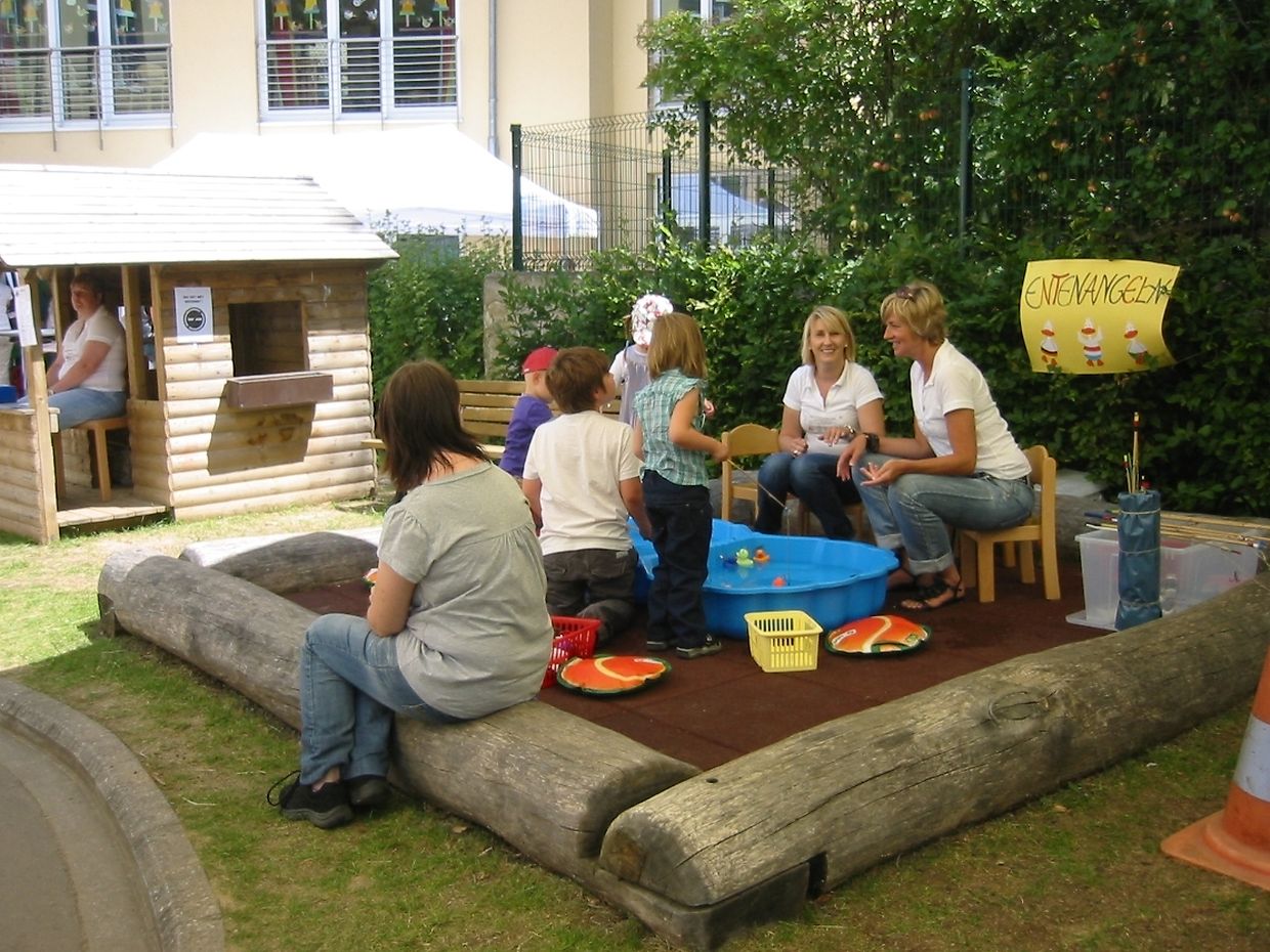 « well an der Kannerstuff deen Daach och SUMMERFEST ass ». Rencontre avec les parents et le personnel autour des stands.