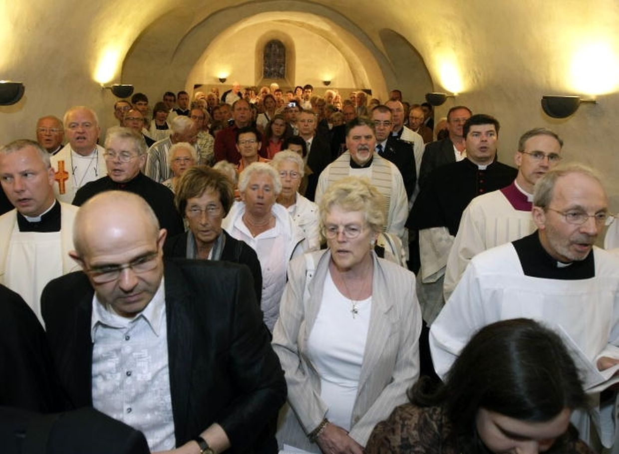 Bevor Mgr. Fernand Franck den eucharistischen Segen spendete, folgten die Litanei vom heiligen Willibrord, die Aussetzung des Allerheiligsten, die Fürbitten sowie das Tantum Ergo und das Lied „Schau, heil'ger Apostel“. Im Anschluss an die Andacht begaben sich die kirchlichen Würdenträger und die zahlreich erschienenen Gläubigen in die Krypta, um kurz im Gebet vor dem Grab des heiligen Willibrord zu verharren.(VON NADINE SCHARTZ - FOTOS:GERRY HUBERTY)