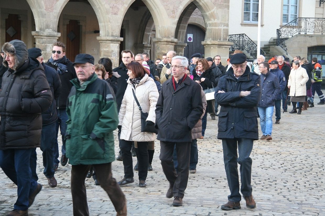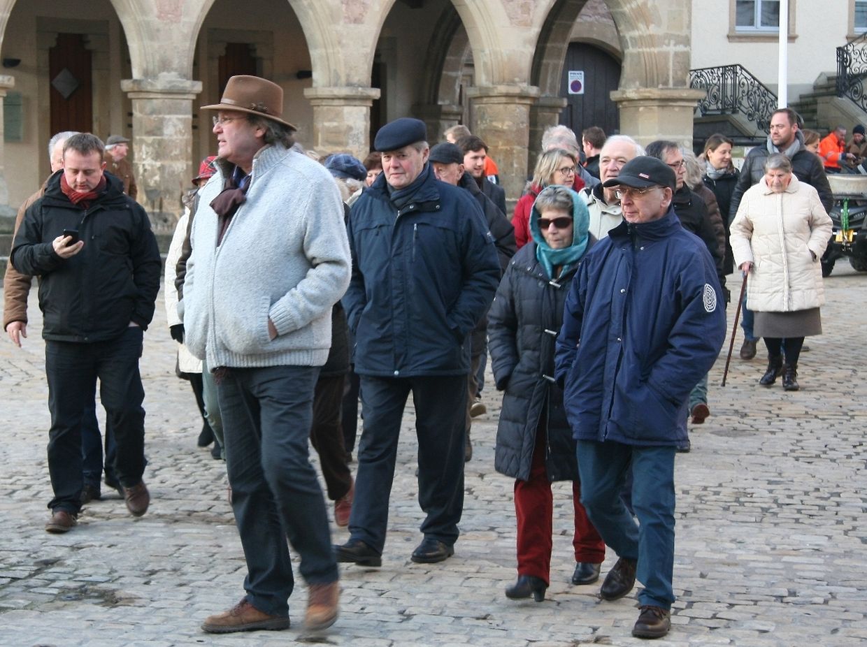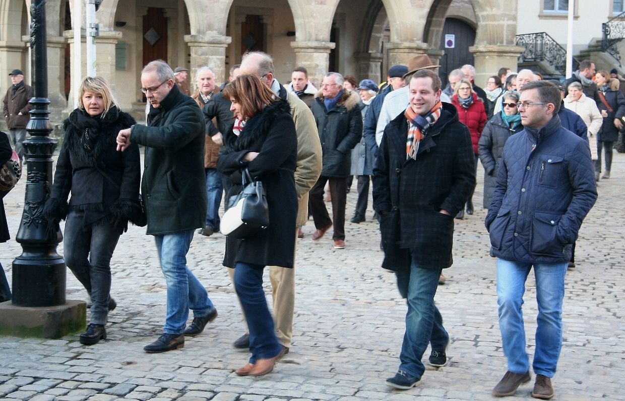 Vill interesséiert Leit, dorënner en etlech Kanner a Jugendlicher, sënn den Tour duerch d'Abteistad matgaang. Um Maart, bäi der Houtfabréck, bäi der Sauer op der Gare an an der Basilika hunn den André Hartmann, den Yves Wengler, den Emile Hansen an de Pierre Kauthen drun erënnert, wat sech am 2. Weltkrich, a speziell am Wanter 1944/45, op dëse Plazen ofgespillt huet.