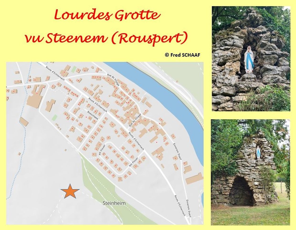 D´ chrëschtlech Traditioun war hei am Land an, an eiser Regioun deif verwuerzelt, Relioun an d´Kierch hunn eis Landschaft an hir Dierfer gepräägt, esou sinn och d´Grotten um Hannergrond vun dësem déiwen chrëschtleche Glawen entstanen. Zu all Grotte gëtt et och nach eng geschichtlech Beschreiwung, dat soll dann bei der nächste Kéier publizéiert ginn, vläicht op enger anerer Plaz zesummen mat der Par Regioun Iechternach Saint-Willibrord