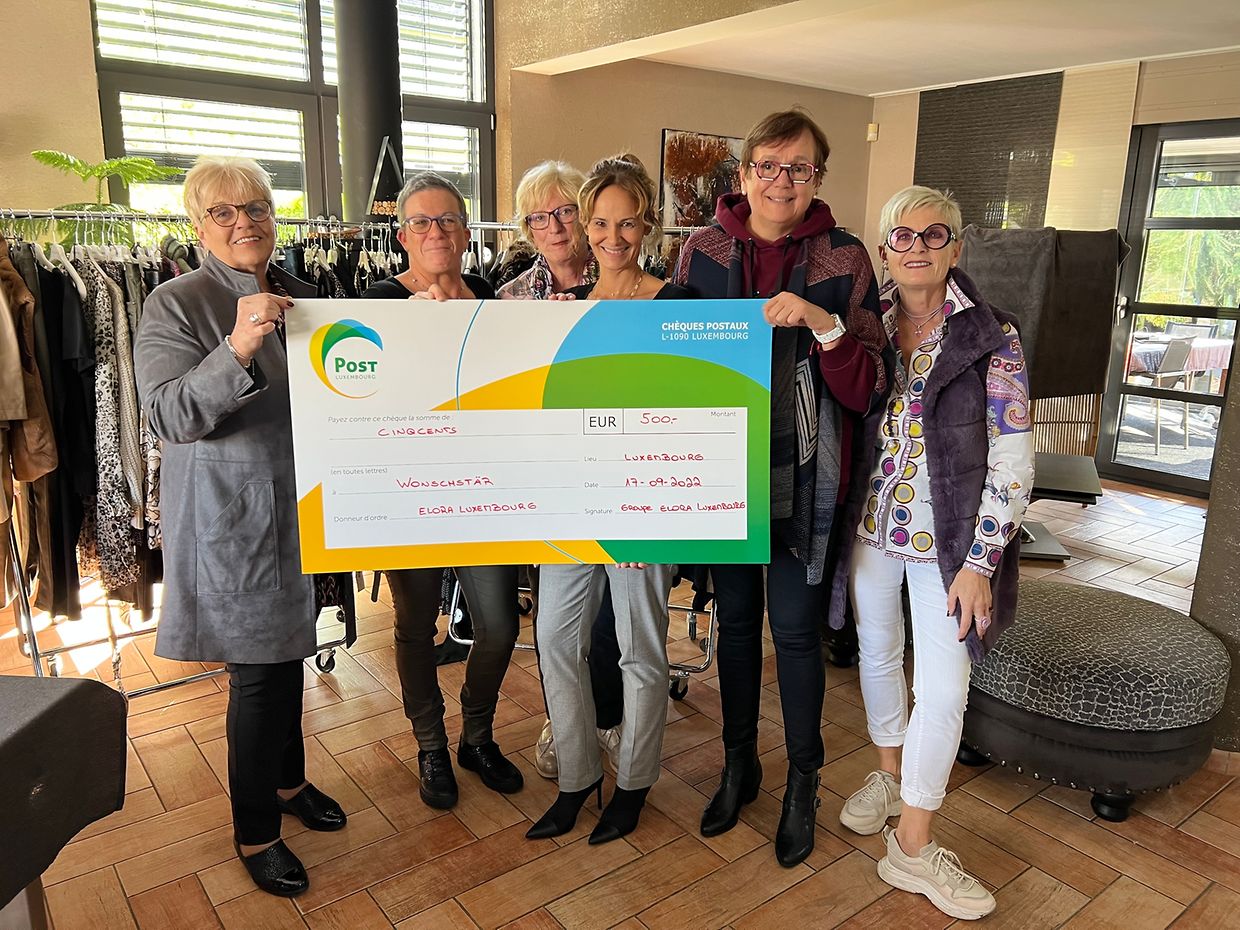 Pour le défilé Elora collection automne/hiver les Personal Stylistes Luxembourg sont heureuses de remettre un chèque de 500 Euros à l'association *Wonschstär*