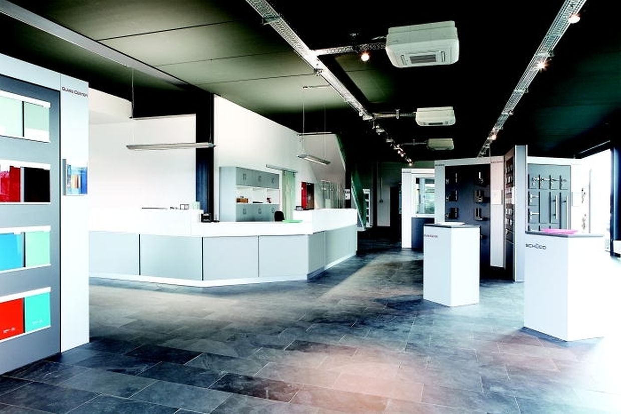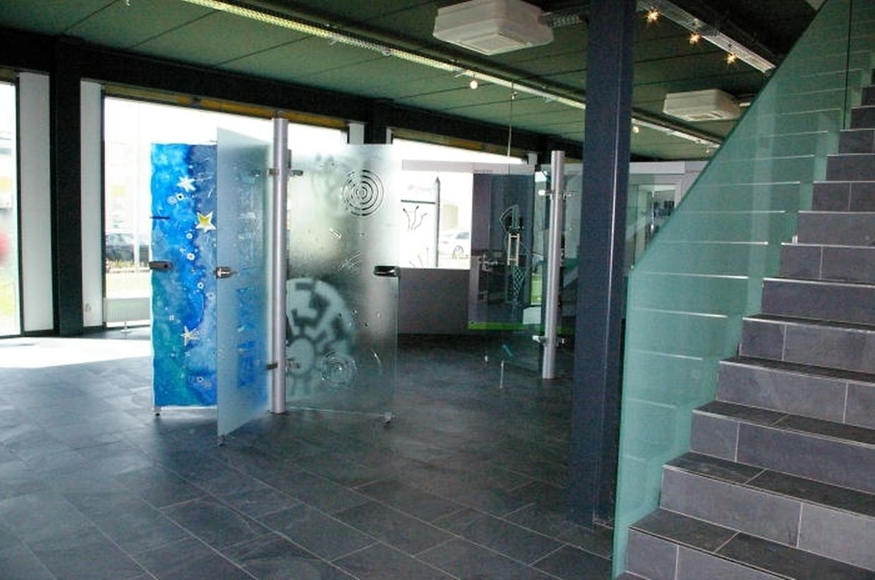 Et la nouveauté est aussi l'ouverture du show-room dans le hall d'entrée. Une large gamme d'échantillons de verre, de réalisations-types et de matériaux est présentée. Cette exposition permet de mettre l'accent sur un ensemble de possibilités complémentaires et adaptables dans chaque intérieur.