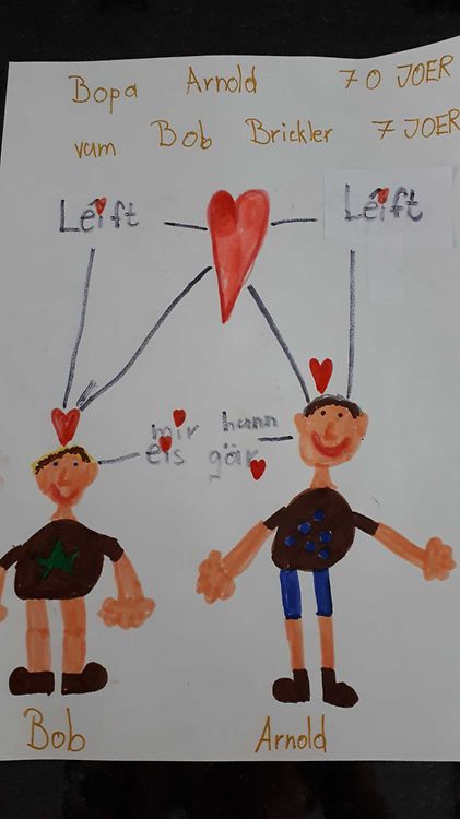 Eischen Vum Bob fir de Bopa Arnold Isabelle Brickler-Schaack Veröffentlicht am Freitag, 10. April 2020 um 07:10 Eischen, Luxemburg Fir de Bopa vum Bob.Ech vermëssen dech a si frou wann ech dech erëm gesinn. Dieser Beitrag ist Teil einer mywort-Mission: Eine Zeichnung für die Großeltern Unpassenden Inhalt angeben