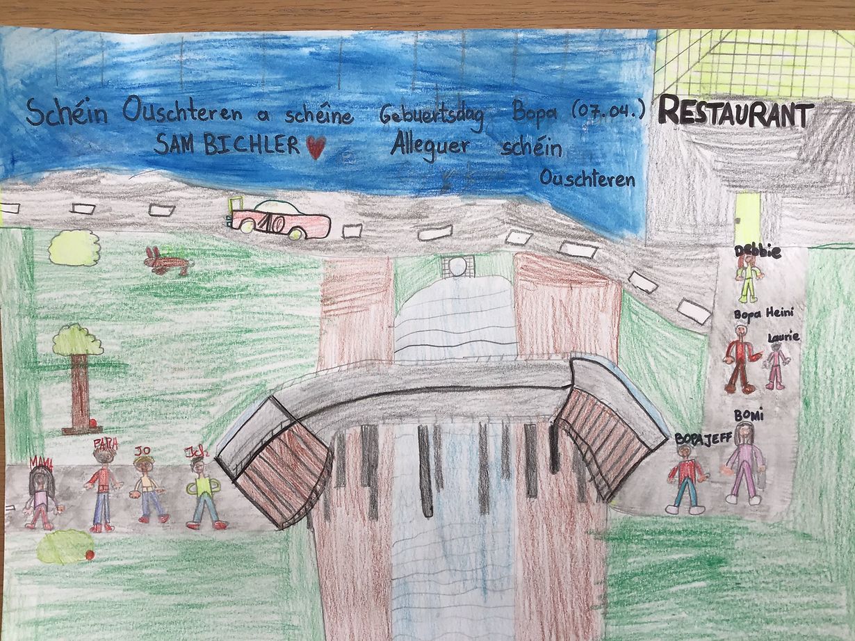 Ellingen Vill Gléck fir däi Gebuertsdag Bopa! Tom Bichler Veröffentlicht am Montag, 6. April 2020 um 12:07 5690 Ellange, Luxemburg Dieser Beitrag ist Teil einer mywort-Mission: Eine Zeichnung für die Großeltern Unpassenden Inhalt angeben Weitere Neuigkeiten von Tom Bichler > Schéin Ouschteren 06.04.20 Ellingen