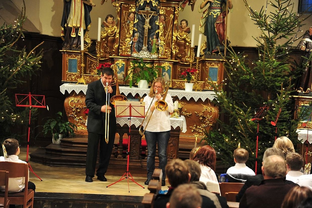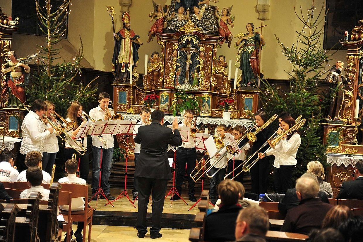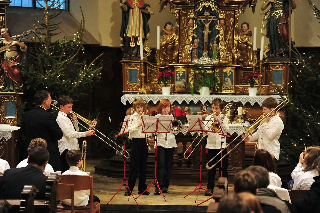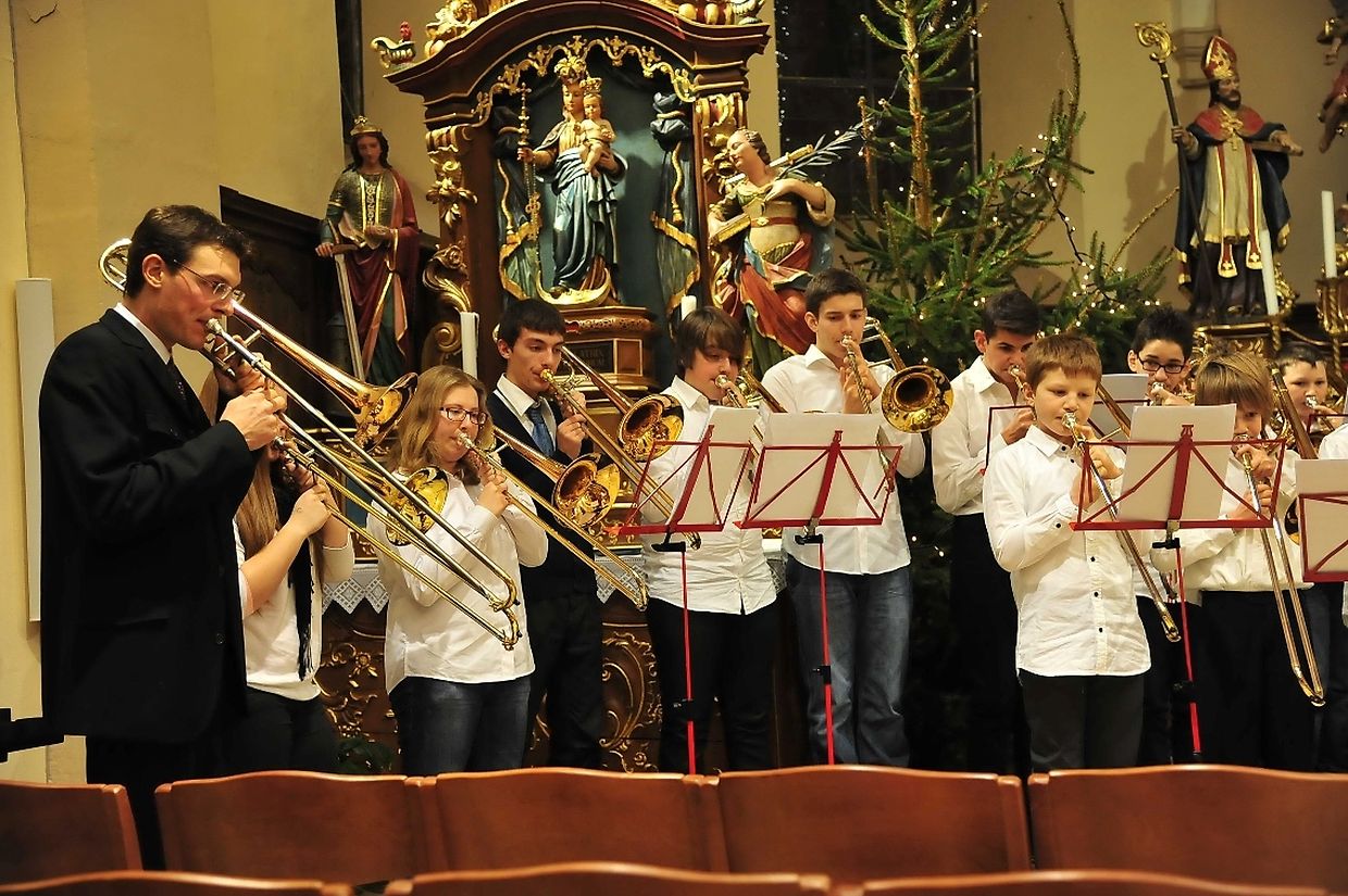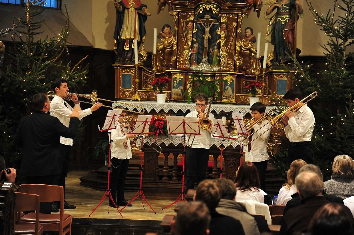 Unter dem Motto“ Advent 2012“ spielten die Schüler der Posaunen- Klassen aus den Musikschulen von Echternach und Redingen am vergangenen Wochenende in den Pfarrkirchen von Elvingen ( Beckerich ) und Berdorf je zu einem Benefizkonzert auf, das dem von der Vereinigung „ Niños de la Tierra“ unterstützen Projektes der Musikschule Escuela Popular de Artes ( EPA )im Armenviertel Achupallas vei Vinã del Mar ( Chile ) zugute kommen wird. Die rund 25 Schüler aus beiden Musikschulen boten anlässlich ihrer beiden Konzerte, die unter der Leitung von Jean- Marie Grimler, Simone Patz und Jean Thill standen, ein musikalisches Programm mit bekannten Werken aus der Advents- und Weihnachtszeit an. Zum Schluss der gekonnten Darbietungen wurde der Gesamterlös der beiden Benefizkonzerte, eine Spende von über 736,36 Euro an Michel Schaack, Vorsitzender und Marco Hoffmann, Vizepräsident der Vereinigung „ Niños de la Tierra“, überreicht. Im Anschluss an ihre Dankesworte, trage die Aktion dazu bei, über 200 minderbemittelten Kindern und Jugendlichen in der Musik- und Kunstschule EPA im chilenischen Armenviertel eine neue Lebenschance zu geben, so beide Empfänger abschliessend. ( FOTOS: CHARLES REISER) www.niti.lu