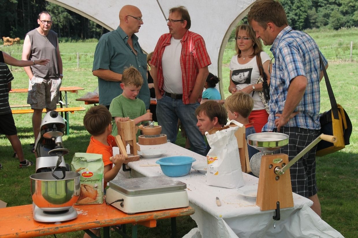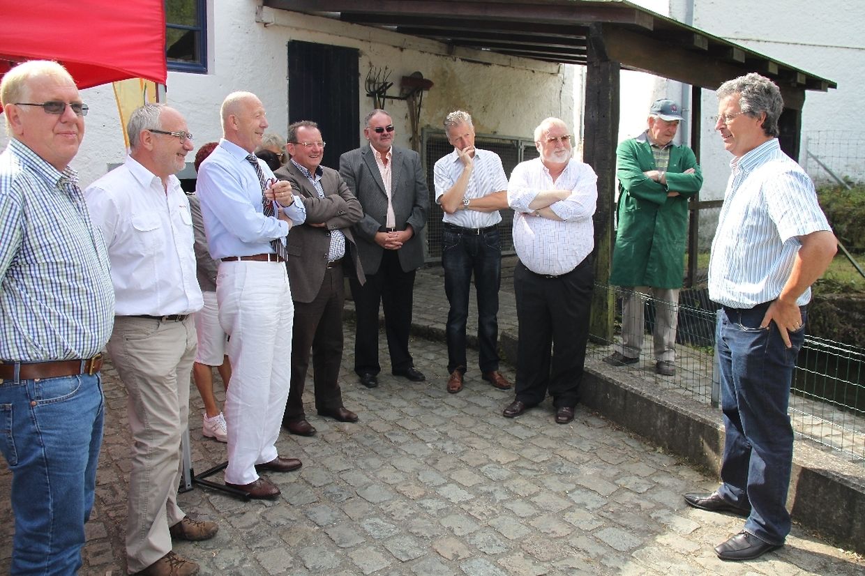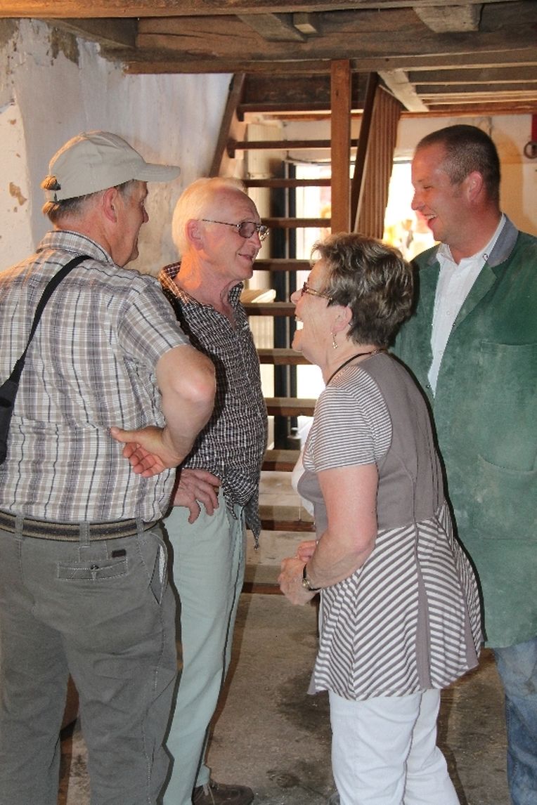 Auch dieses Jahr hatten wieder zahlreiche Besucher den Weg nach Enscheringen gefunden. Dort war besonders Willi Racké ein gefragter und geschätzter Gesprächspartner. Kein Wunder, denn keiner kennt die Wassermühle aus Enscheringen so gut wie er , der bis zum wirtschaftlichen Ende der elterlichen Mühle hier arbeitete und der sie auch danach noch 35 Jahre lang pflegte und in Schuss hielt, bis sie im Jahre 2001 vom Tourist Center aus Munshausen erworben und renoviert wurde. Die Mühle, die auch heute noch voll funktionsfähig ist hat sich im Laufe der Jahre zu einer echten Touristenattraktion entwickelt. Genau das war auch das Ziel der Verantwortlichennn des Tourist Center Munshausen/Clerf, die nicht auf eine große Produktion aus waren, vielmehr wollte man den Besuchern den Werdegang vom Getreide zum Mehl nahe bringen .