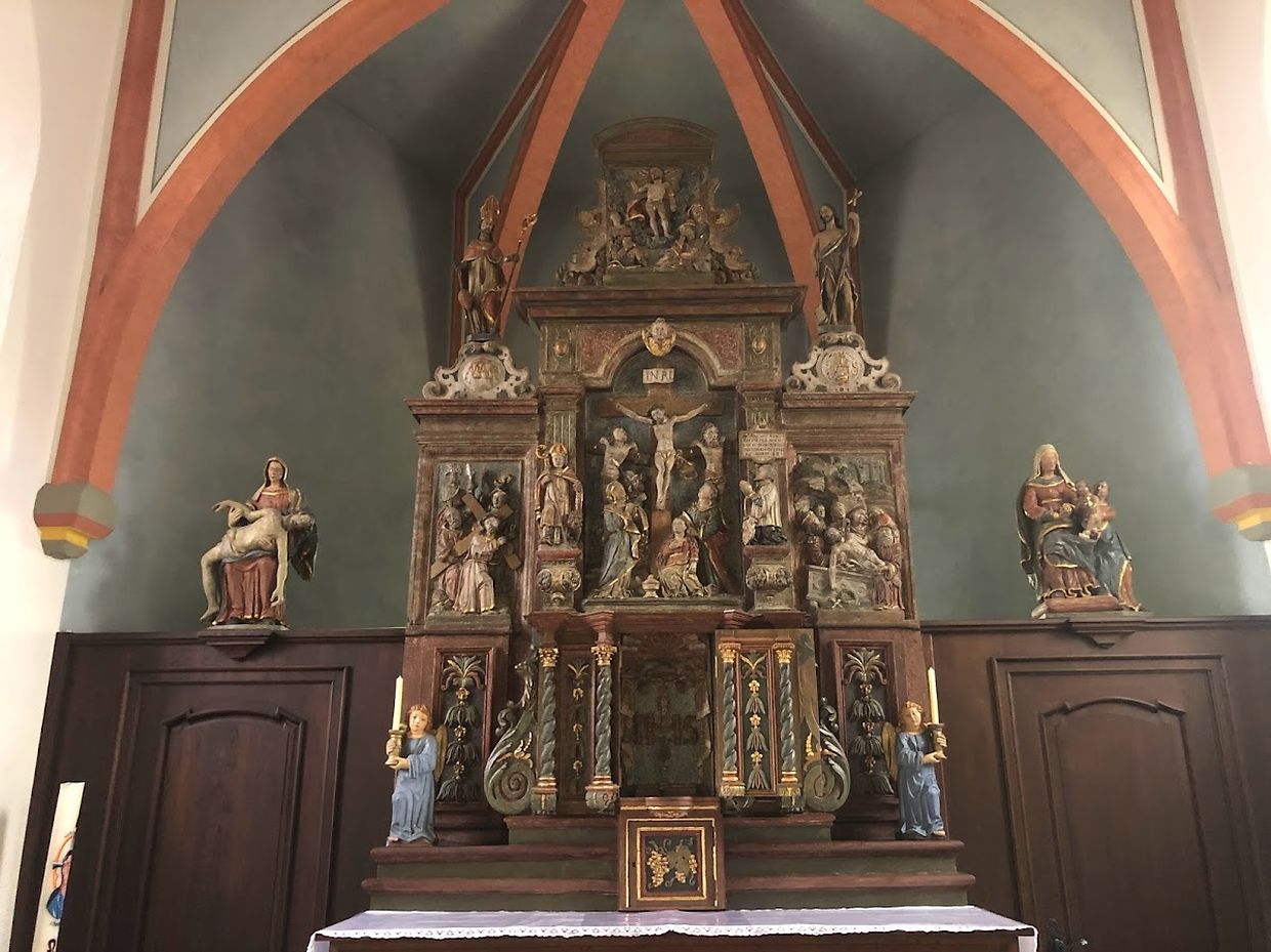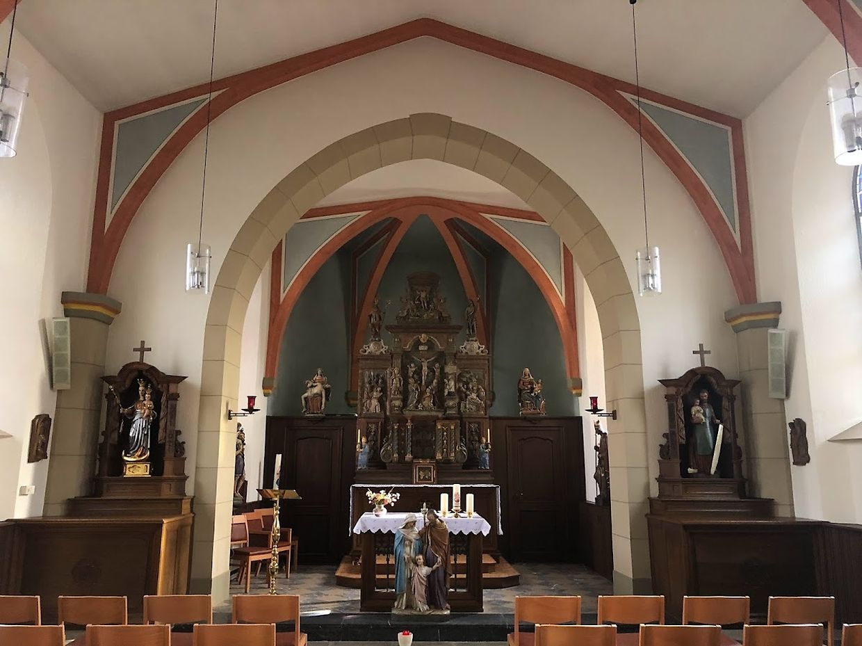Le visiteur qui s'en approche est d'abord frappé par le clocher mince et élancé de l'église qui se pointe vers le ciel. L'édifice, d'apparence modeste, mais aux proportions harmonieuses, abrite quelques joyaux artistiques de grande valeur: un maître-autel (16e siècle) et plusieurs statues baroques, ainsi que, depuis 2001, un nouvel orgue conçu dans le goût du classicisme de l'Allemagne du Nord.