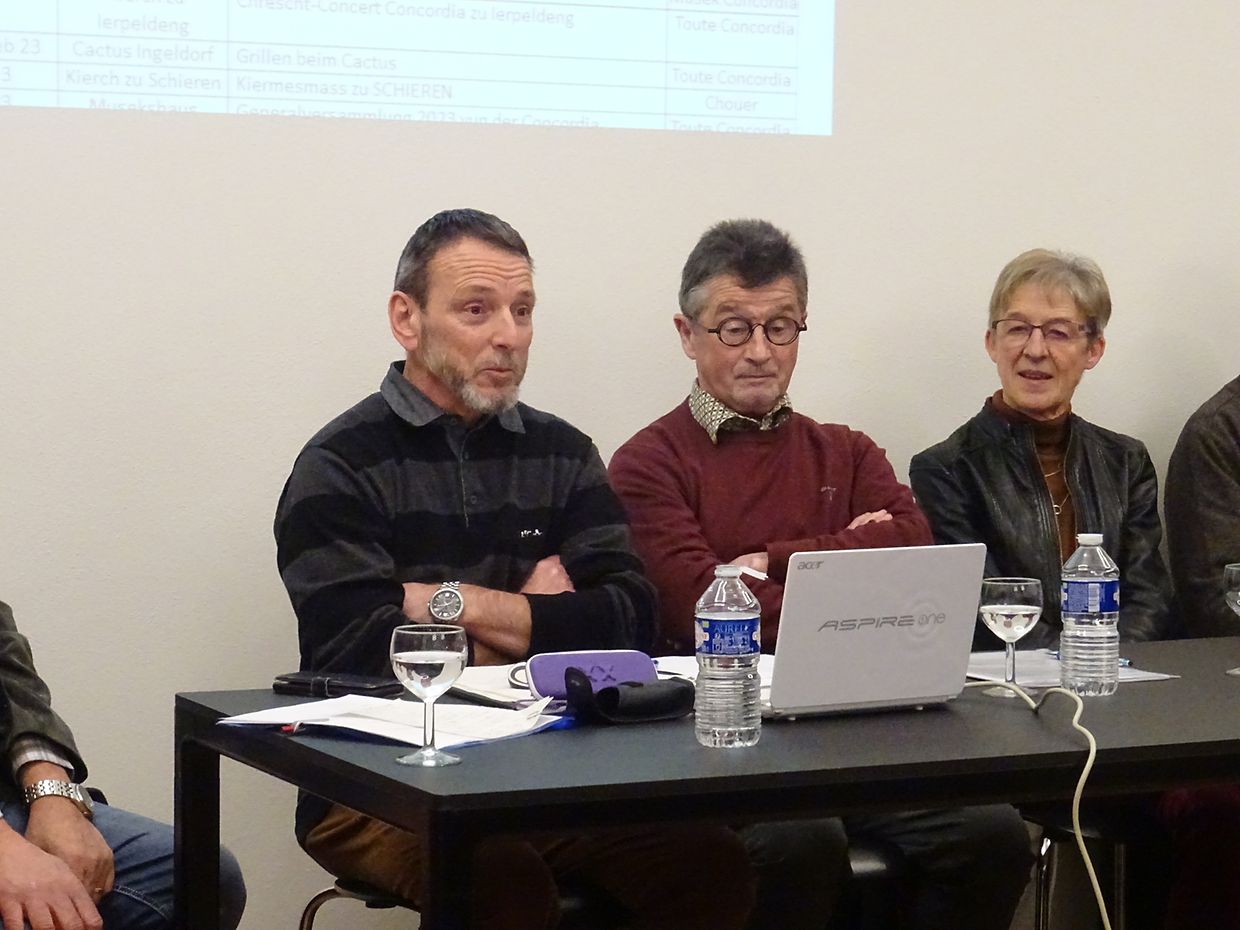 De Sekretär Yvon Kries huet de Rapport vun den Aktivitéite gemaach, déi no de Corona-Restriktioune vun de leschte Joren, endlech rëm de Wee an d’Normalitéit fonnt hunn, souwuel fir d’Musek, wéi och fir de Gesank an d’Jugendmusek. Och de Bilan vum Tresorier ass positiv ausgefall, wat virun allem och op déi generéis Ënnerstëtzung vun der Ierpeldénger Gemeng zréckzeféieren ass. Mam Gilbert Leider konnt och en neie Member am Comité begréisst ginn.
