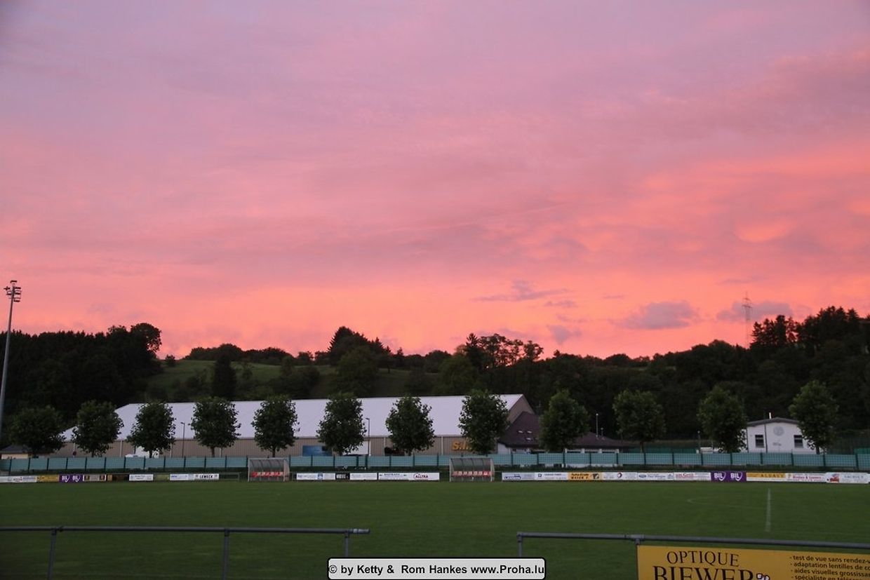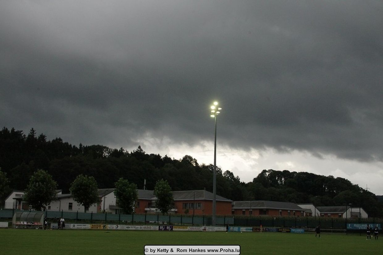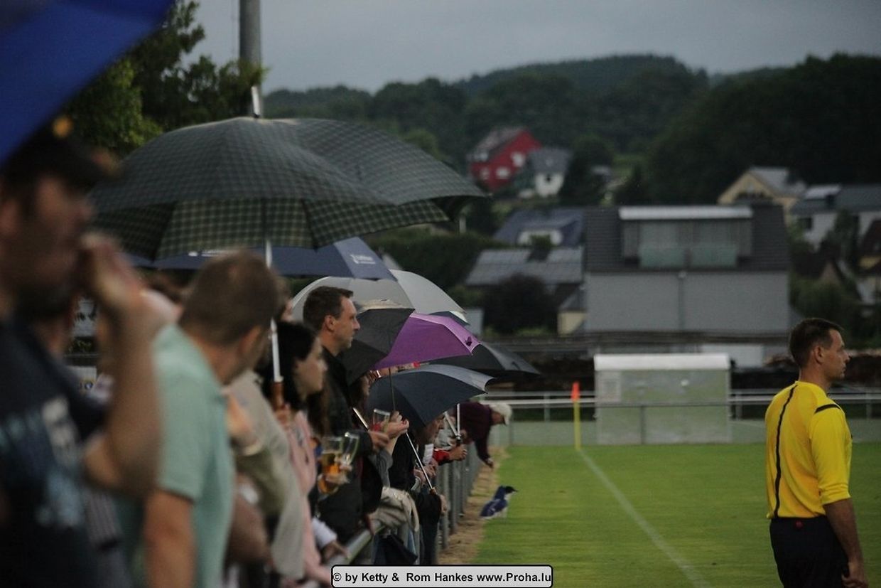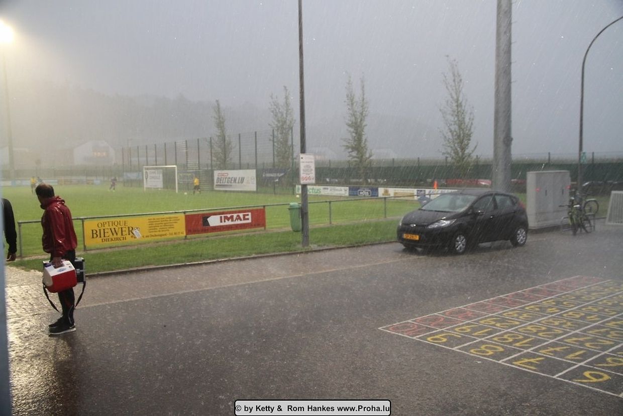 Déi 2 Maetcher vun den Eliminatoiren goufen an der Woch bei guddem Wieder gespillt , mä e Sonnden huet dee ville Reen den Oflaf vun de Finale nawell staark gestéiert an et huet misse bëssen improviséiert ginn.