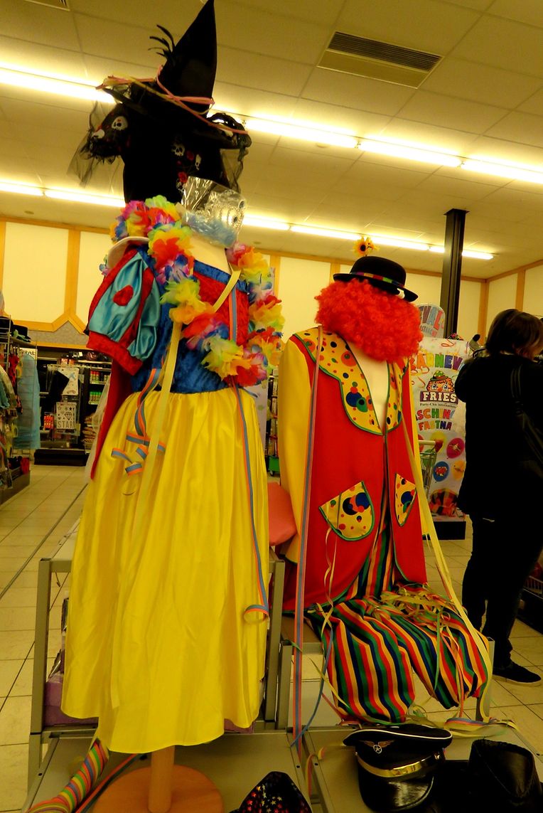 An de Geschäfter kann een ët gesinn: Geschwënn ass Fuesend. Regaler voll Kostümer, Hitt (vum einfache Sombrero bis zum elegante Borsalino mat Goldstéckereien) , Masken, "gëlle" Krounen an Diadeemer, Schminkartikelen, Krawatten, Brëller, Fuesbännecher, Konfetti, Waffen, Juxspray an .. an .. an ... . Grouss a Kleng wäerten ët nit liicht hunn, sëch z'entscheeden. De Portemonni wäerd mussen dru gleewen, mee schliesslech ass nëmmen eemol Fuesend am Jor. Da lass!