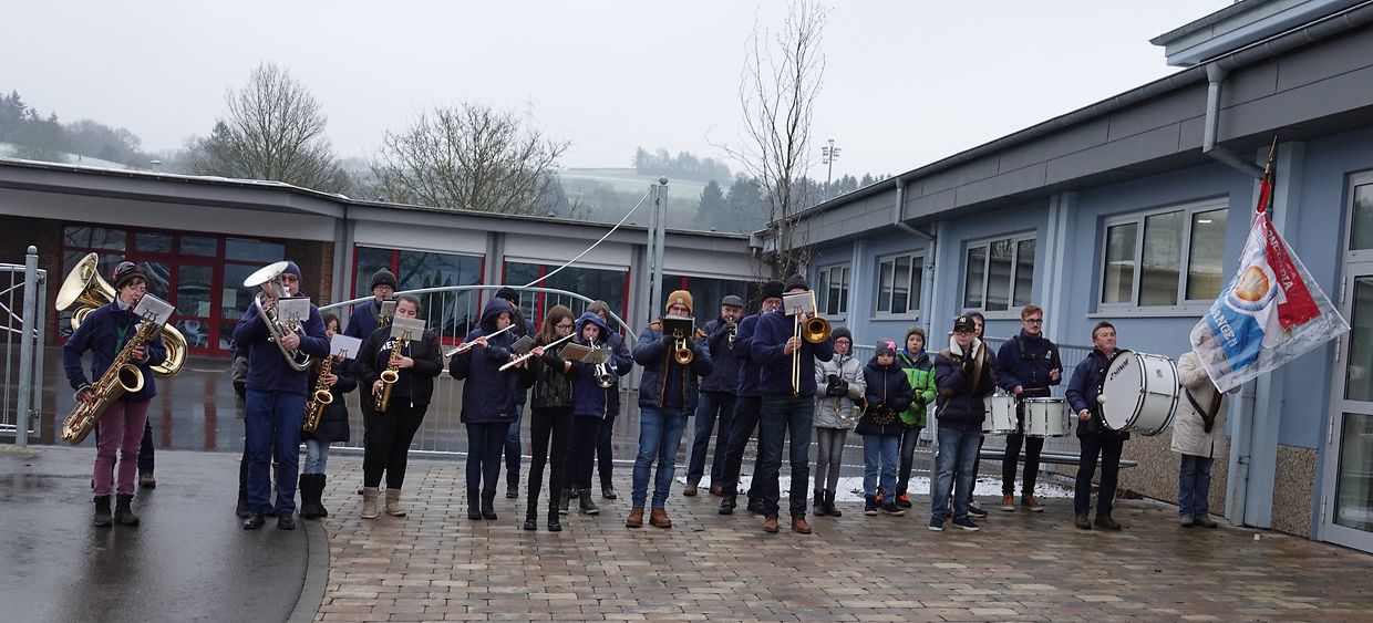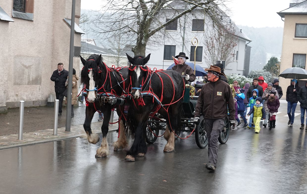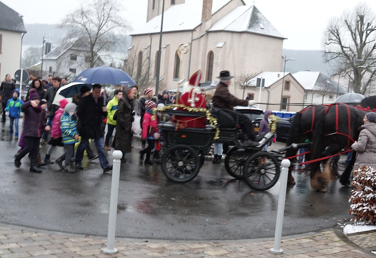 De Kleeschen mat Schnéi am Gepäck zu Ierpeldeng op der Sauer