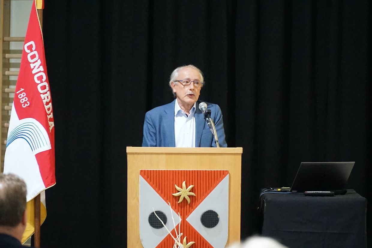 No de Gléckwënsch vun der UGDA, dem Daachverband vun de Lëtzebuerger Museken, iwwerbruecht vun der Regionaldelegéiert Myriam Roettgers-De Rond, war et um André Thull, fir mat Hëllef vun enger ganzer Rei Fotoen, en Iwwerbléck ze ginn iwwer de Fonctionnement an d’Aktivitéite vun der Concordia als Duerfmusek.