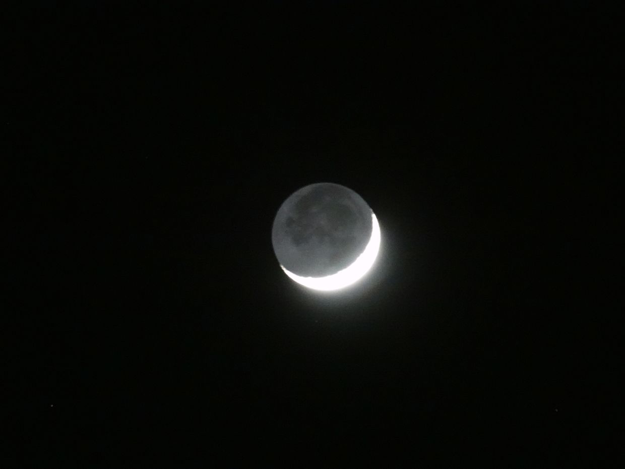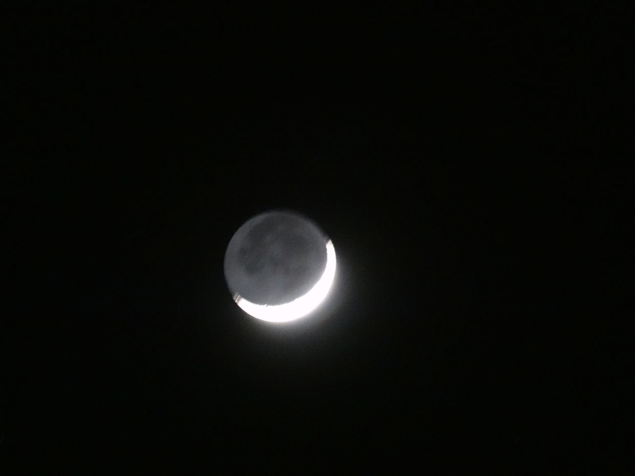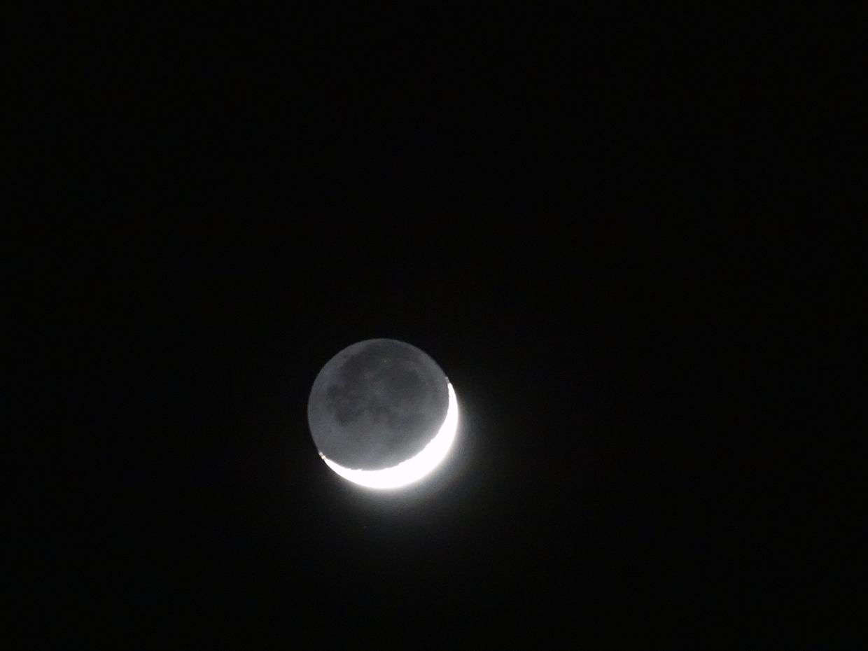 Mondsichel bei klarem Himmel am Abend des Frrühlingsanfanges