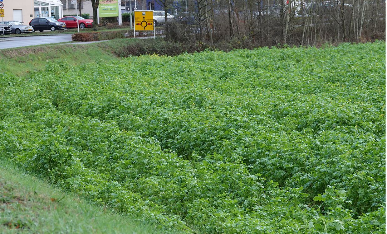 Wat ufanks no Raps ausgesinn huet, ass a Wierklechkeet Moschtert. Dat hunn ëch mir beim Bauer misse confirméire loossen, nodeems ech festgestallt hat, dass d'Planzen am grousse Feld beim Dreieck am November vill méi grouus goufen an eng aner Form vu Blieder hunn. Am Fréijor verginn se, nodeens si d'Düngemëttel besser verschafft hunn a ginn ënnergeplout.