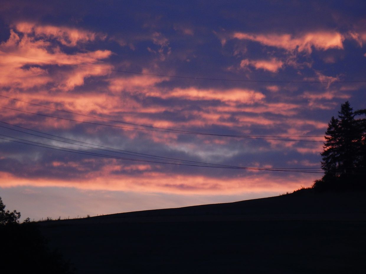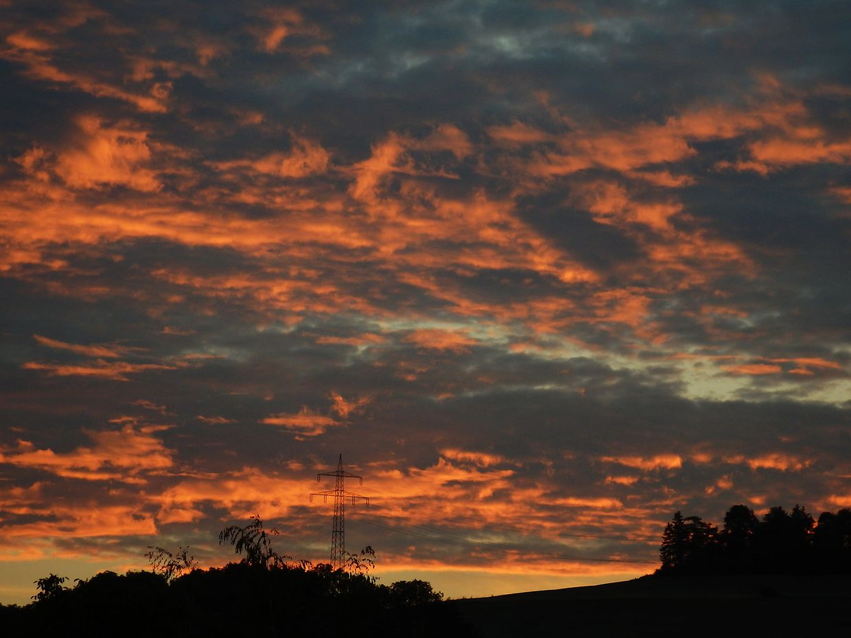 Feuerrot leuchteten die Wolken über dem Goldknapp kurz vor 6 Uhr. Das erinnerte mich unmittelbar an den Blutmond, den ich von dort mit meiner auf Stativ installierten Kamera abends am 27. Juli lange umsonst fotografieren wollte. Aber ich hatte lange auf dessen Erscheinen auf dem wolkenverhangenen Horizont gewartet, bis er endlich schemenhaft erschien. An gute Bilder war nicht zu denken. Schade!