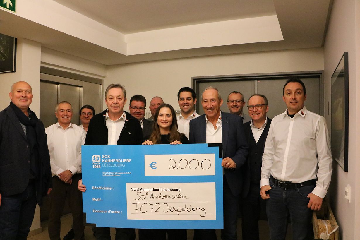 Der FC72 Erpeldingen hat 2022 sein 50-jähriges Bestehen gefeiert. Neben einer akademischen Sitzung, mehreren Fußballturnieren und einem Ehemaligentreffen, hat der traditionsreiche Fußballverein aber auch an diejenigen gedacht die eine individuelle schulische und berufliche Förderung brauchen. Daher hat das Organisationskomitee für das 50-jährigen Bestehen des Fußballvereins beschlossen dem SOS Kinderdorf Luxemburg 2.000 € zu spenden. Die grosszügige Spende geht an das SACCLY (Structure d'accueil pour jeunes à besoins spécifiques fréquentant des lycées). Das Saccly ist eine Wohngruppe des SOS Kinderdorfes in Erpeldingen und richtet sich an junge Menschen im Alter von 13 bis 18 Jahren, die eine intensive schulische und familiäre Unterstützung benötigen.