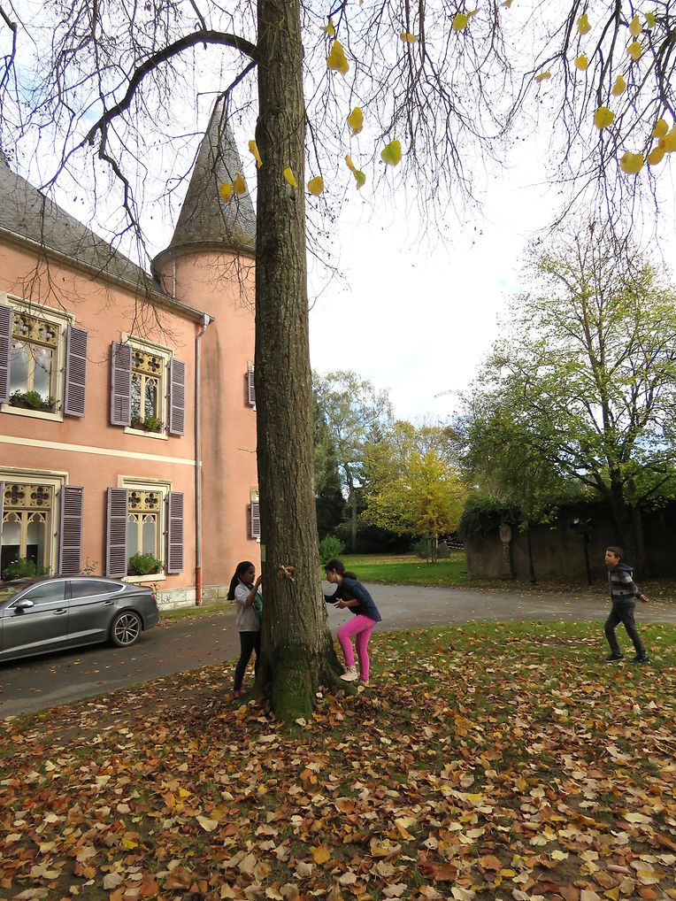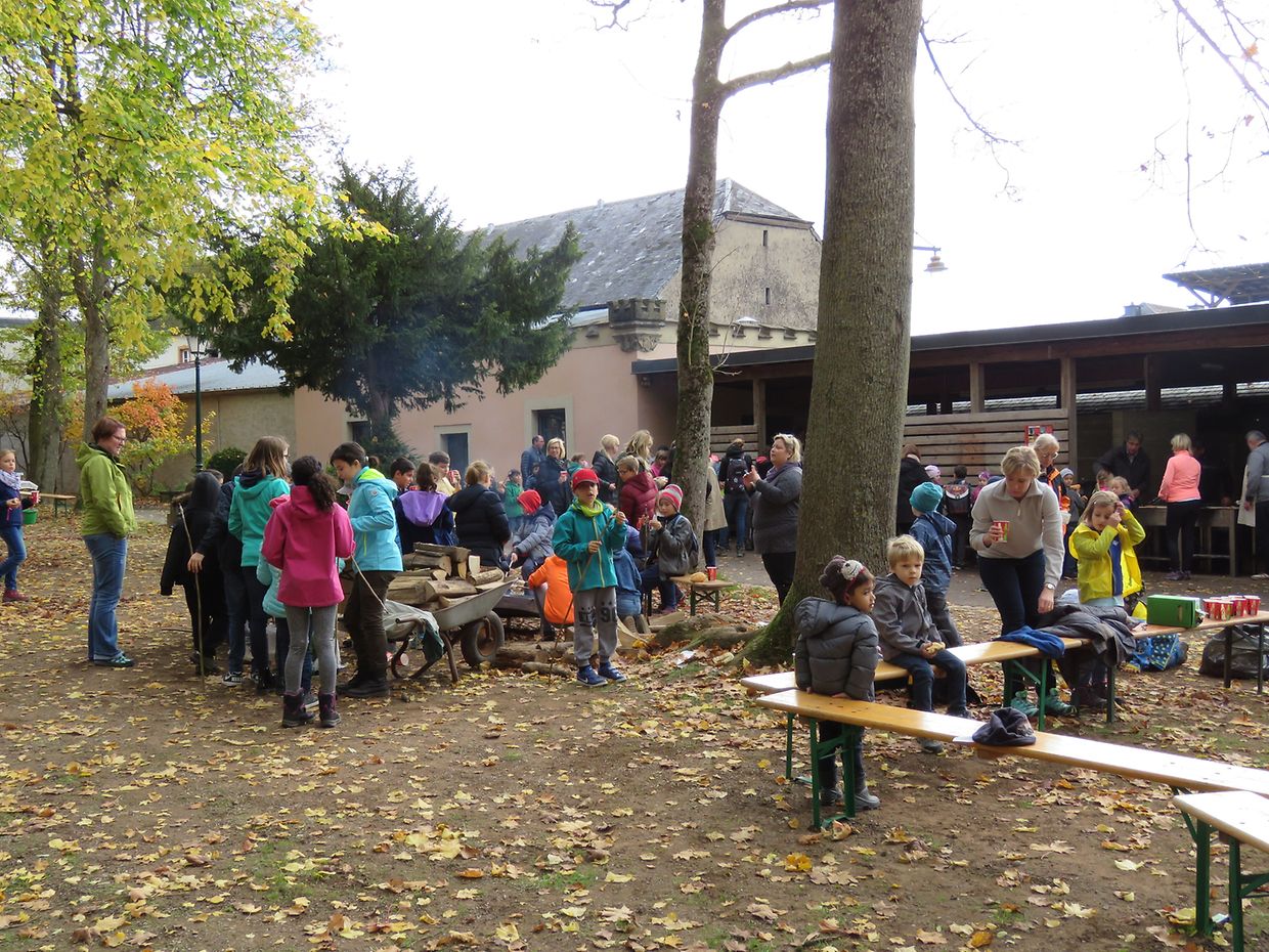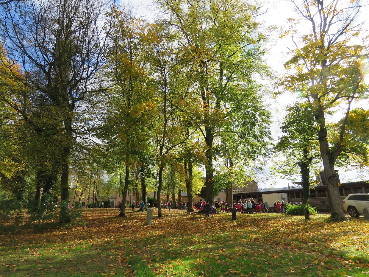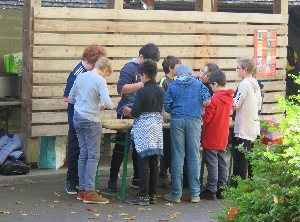 D'Léierpersonal vun der Ierpeldenger Grondschoul hat vun deem gudde Wieder profitéiert, fir de lèschte Schouldag vrun der Allerhellgevakanz am Schlasspark ze feieren. Hei gouf schonns fréih alles geriicht, fir datt um 12 Auer déi vill hongreg Kanner nieft engem gudde Gedrénks och eppes z’iesse kréichen. Et konnt gewielt ginn tëscht Gromperekichelcher, Thüringer, Mettwurschten. Mayonnaise, Ketchup a Moschtert hunn nit gefeelt. D’Lait hannert dem Grill hu geschweesst, well d’Schlaang war nawell laang. Mee ët gouf nit gedréckt a gestridden. Déi grouss Kanner hate schonns vru Mëtteg déck Rommelen gewäsch, gekäppt, ausgehillegt . Mond, Nues an An goufen erausgeschnëppelt. Do kommen owes, wann ët däischter ass, Käerzen dran a da gëtt dat Trauliicht op d’Fënsterbänk gestallt fir d’Lait fäerten ze doen. Iwwregens ass et nit sou liicht, Rommelen erbäizekréien, well där kaum nach ugeplanzt ginn. Mee den Néckel, Bauer aus dem Duerf, hat versprach, een Unhänger voll Rommelen op d’Plaz ze bréngen. Heen hat ët gudd gemengt, well ët bloufen der souguer nach rèscht. Nom Iessen gong ët dunn am Park op déi Plazen, wou Spiller a Bastelaktivitéiten um Programm stongen. Mat Bou oder „Armbrust“ huet ët geheescht, wéi deemools de Wilhelm Tell een Apel um Kapp vu séngem Jong ze geroden. Och Keele gouf gespillt, mat Käschten Eechelen a Blieder Konschtwierker un déi déck Beem gezaubert. Bei engem anere Spill huet een am Leie musse weisen, ween dee Stärkste wir, egal ob Jong oder Meedchen. Bei engem Gänsespill huet ee missen Froen dorëmmer op de Beem sichen an dann déi richteg Äntwerte fannen. Artistesch Leeschtunge waren och gefrot. Et kann een nit alles opzielen.