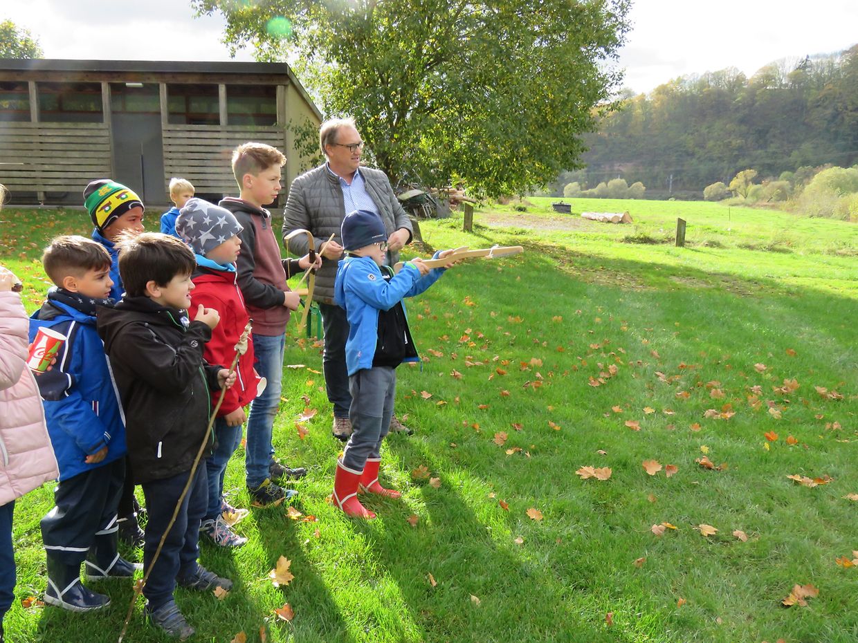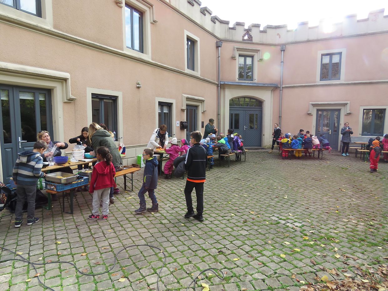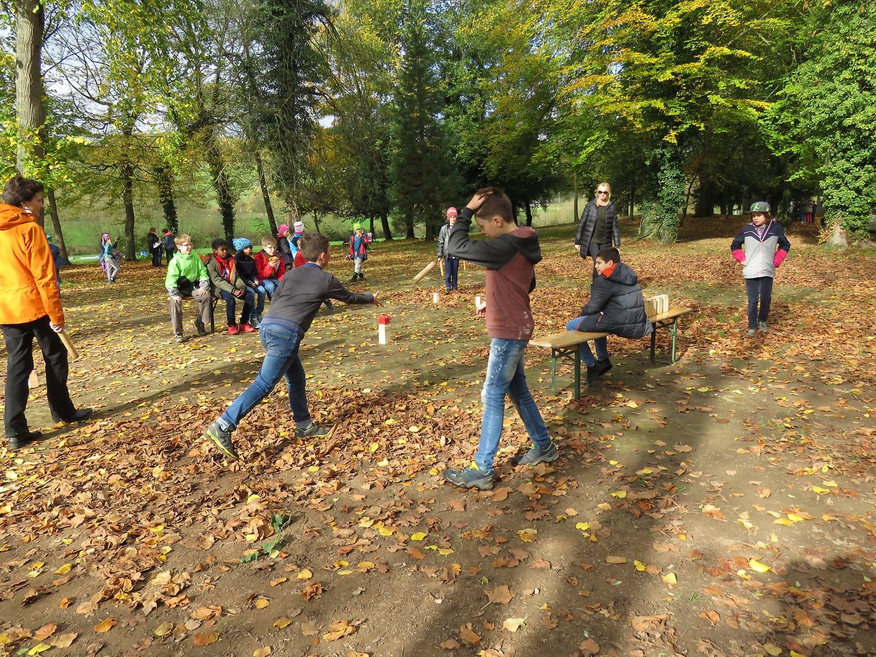 D'Léierpersonal vun der Ierpeldenger Grondschoul hat vun deem gudde Wieder profitéiert, fir de lèschte Schouldag vrun der Allerhellgevakanz am Schlasspark ze feieren. Hei gouf schonns fréih alles geriicht, fir datt um 12 Auer déi vill hongreg Kanner nieft engem gudde Gedrénks och eppes z’iesse kréichen. Et konnt gewielt ginn tëscht Gromperekichelcher, Thüringer, Mettwurschten. Mayonnaise, Ketchup a Moschtert hunn nit gefeelt. D’Lait hannert dem Grill hu geschweesst, well d’Schlaang war nawell laang. Mee ët gouf nit gedréckt a gestridden. Déi grouss Kanner hate schonns vru Mëtteg déck Rommelen gewäsch, gekäppt, ausgehillegt . Mond, Nues an An goufen erausgeschnëppelt. Do kommen owes, wann ët däischter ass, Käerzen dran a da gëtt dat Trauliicht op d’Fënsterbänk gestallt fir d’Lait fäerten ze doen. Iwwregens ass et nit sou liicht, Rommelen erbäizekréien, well där kaum nach ugeplanzt ginn. Mee den Néckel, Bauer aus dem Duerf, hat versprach, een Unhänger voll Rommelen op d’Plaz ze bréngen. Heen hat ët gudd gemengt, well ët bloufen der souguer nach rèscht. Nom Iessen gong ët dunn am Park op déi Plazen, wou Spiller a Bastelaktivitéiten um Programm stongen. Mat Bou oder „Armbrust“ huet ët geheescht, wéi deemools de Wilhelm Tell een Apel um Kapp vu séngem Jong ze geroden. Och Keele gouf gespillt, mat Käschten Eechelen a Blieder Konschtwierker un déi déck Beem gezaubert. Bei engem anere Spill huet een am Leie musse weisen, ween dee Stärkste wir, egal ob Jong oder Meedchen. Bei engem Gänsespill huet ee missen Froen dorëmmer op de Beem sichen an dann déi richteg Äntwerte fannen. Artistesch Leeschtunge waren och gefrot. Et kann een nit alles opzielen.