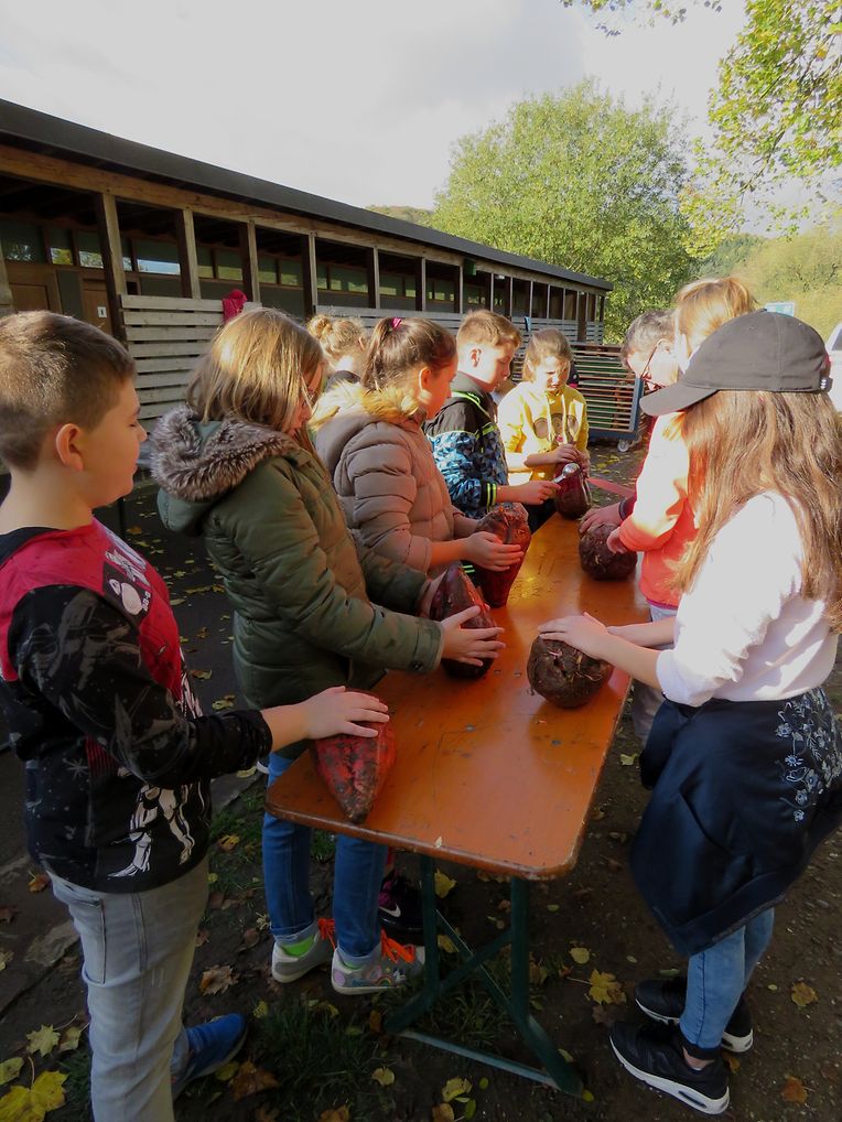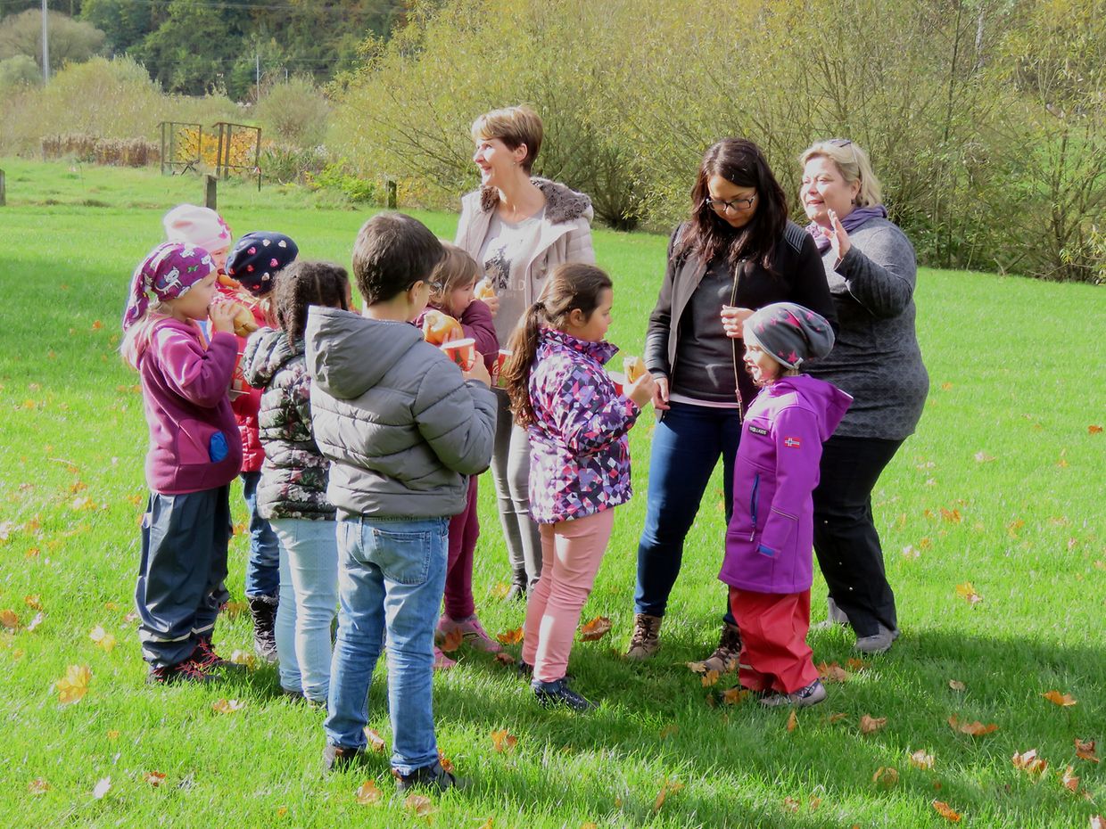 Am Nomëtteg koumen och verschidden Eltere laanscht. D’Stëmmung war ausgezeechent an d’Zäit gong séier erëm. Um 4 Auer war ët du gedon. Lo fänkt dann déi wuelverdéngten Allerhellgevakanz unn. Äddi Schoul!