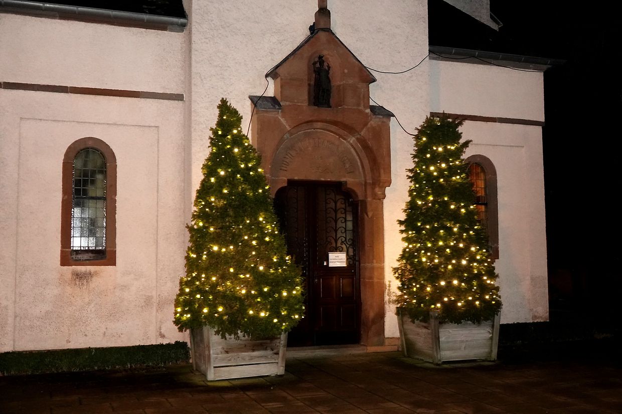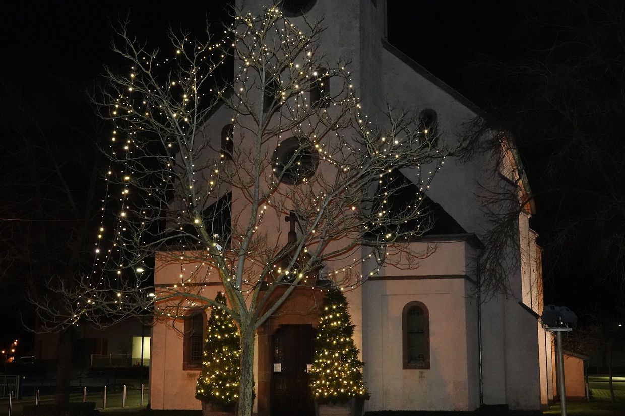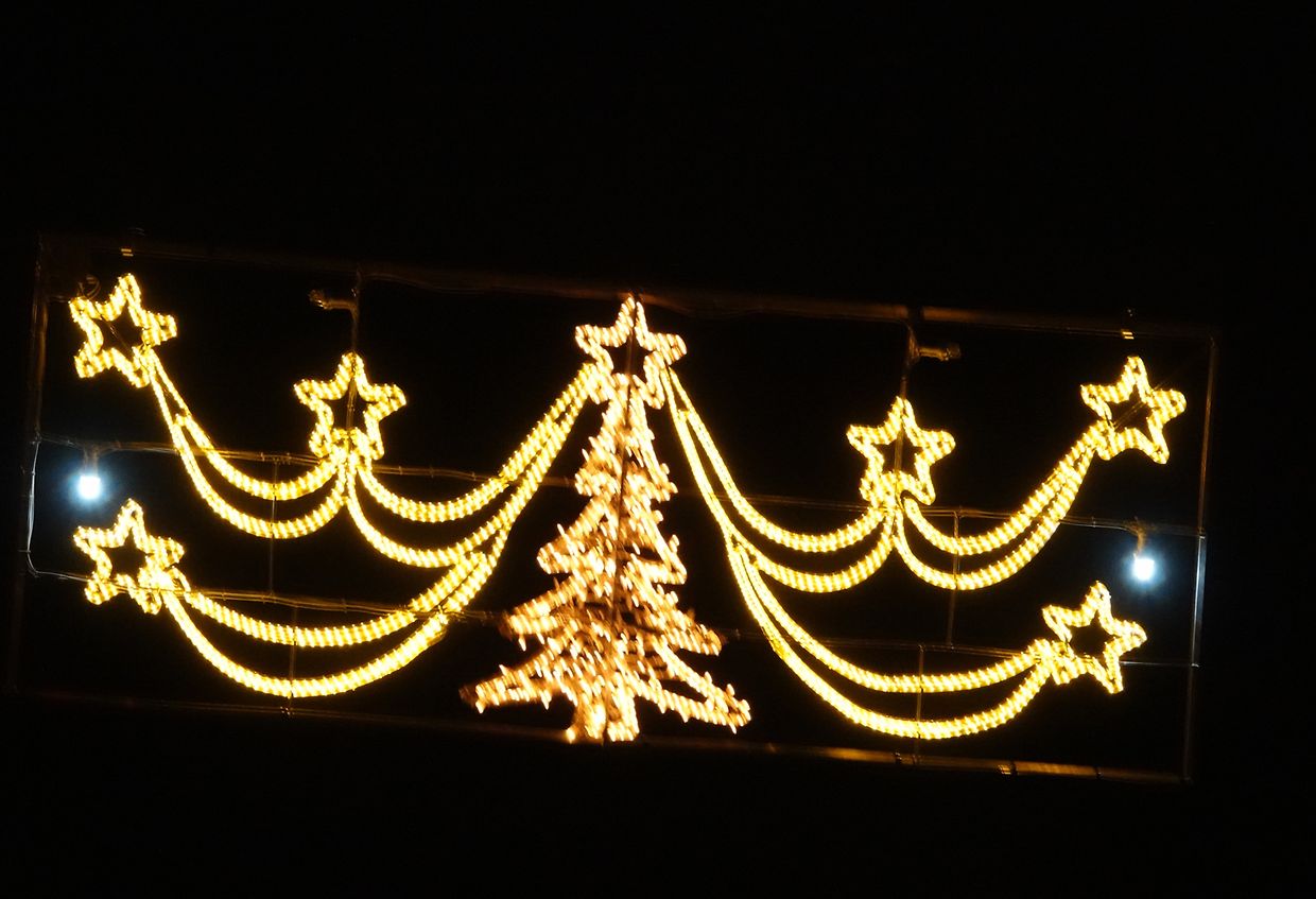 Hell strahlen allerseits Weihnachtsbeleuchtungen, mal dauernd, mal in phantasievollen Variationen und rasant schnellem Wechsel, so dass statt Fotos eher Videos zum Festhalten angebracht sind. Alles muß zur Befestigung herhalten: Hecken, Ziersträucher, ausgewachsene Bäume, Treppengeländer inklusive Handlauf, Dachrinnen, ganze Fassaden, Haustüren. Eindeutiger Trend: LED, tausendfach bei Figuren wie Sterne, Rentiere, Schlitten, Geschenkpakete, noch ab und zu ein aufgeblasener Weihnachtsmann mit üppigem Bauchumfang. Der Weihnachtsmann als Fassadenbezwinger scheint nicht mehr im Trend zu sein. Mancher mags lieber in warmem gelb oder rot, andere bevorzugen kaltes Blaulicht. Hauptsache, es leuchtet. Gemeinde und Privatleute machen großzügig mit. Allzu "aufregende" Beleuchtungen mit schnell wechselnden Effekten und Helligkeitsintensität sollten ab 22 Uhr abgschaltet werden, damit die lieben Nachbarn nicht gezwungen sind, eine dunkle Maske vor den Augen anzubringen, wenn sie ungestört schlafen wollen oder müssen.