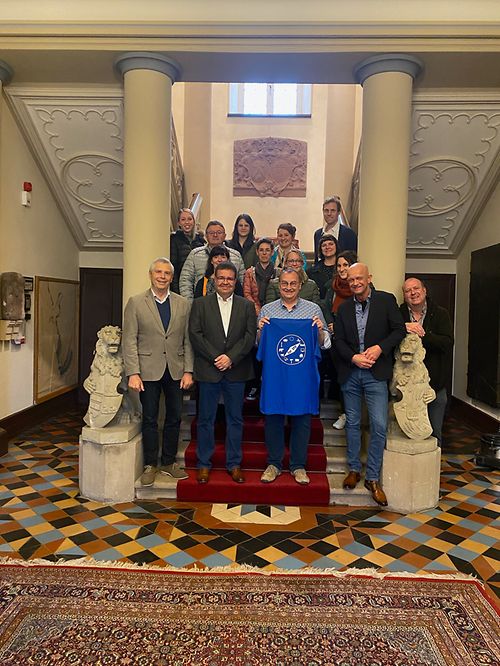 Anlässlich des offiziellen Empfangs der Delegationen der unterschiedlichen Partnerschulen im Schloss von Erpeldingen an der Sauer, dem Sitz der Gemeindeverwaltung, gab Bürgermeister Claude Gleis einen kurzen Einblick in die Geschichte des Ortes.