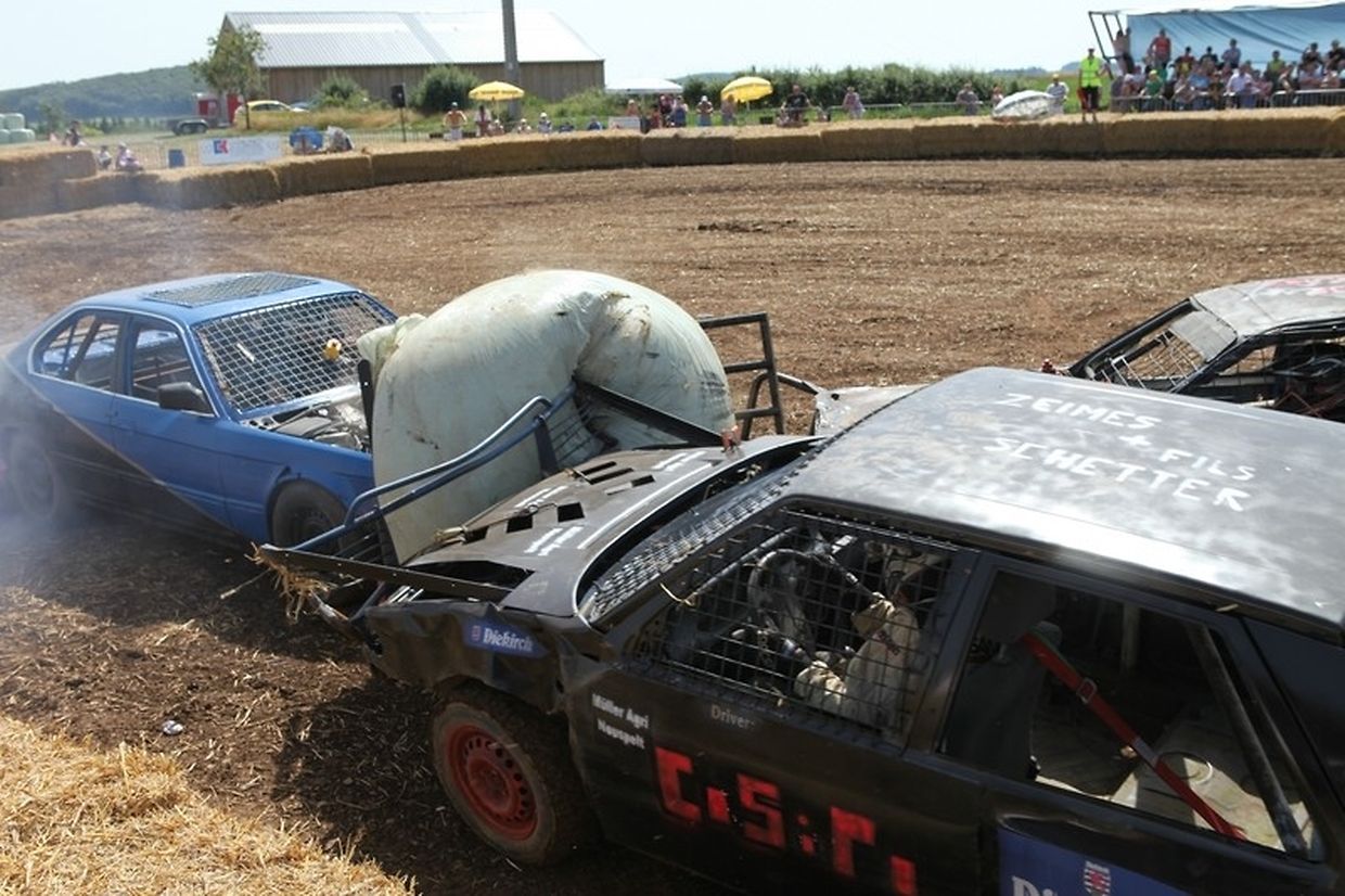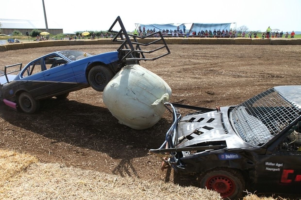 D'Loft huet gebrannt, wéi de Sonndeg zu Ierpeldeng bei Wolz déi 16 Equipen vum "Autoball" openee getraff sinn. A Ronnen vu 2 x 5 Minutte gouf ab 12 Auer Mëtteg bis an de fréien Owend era probéiert erauszefannen, ween dann elo am Beschte mat dem knapp 200 Kilo schwéiere Ball aus Stréi emgoe kann.