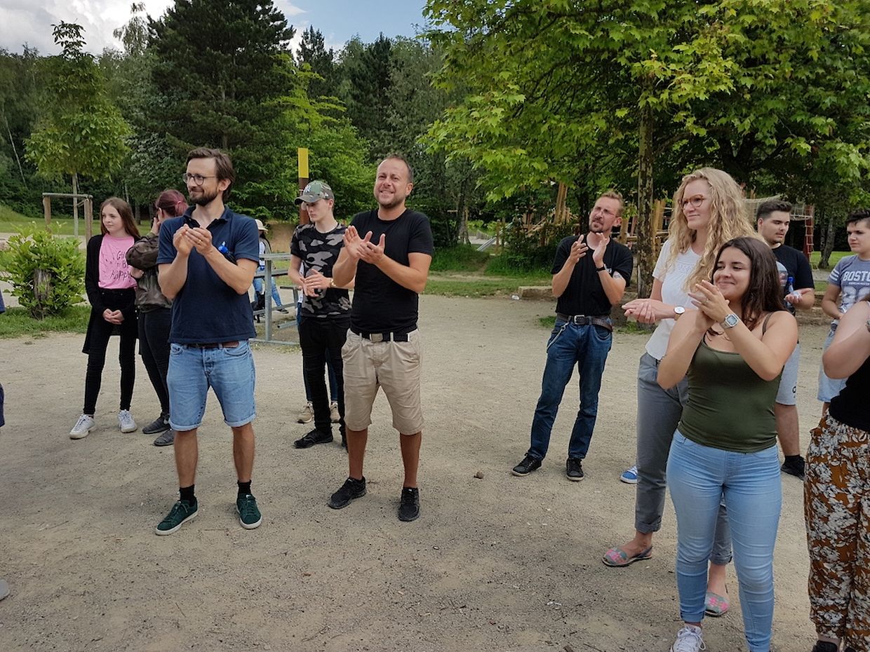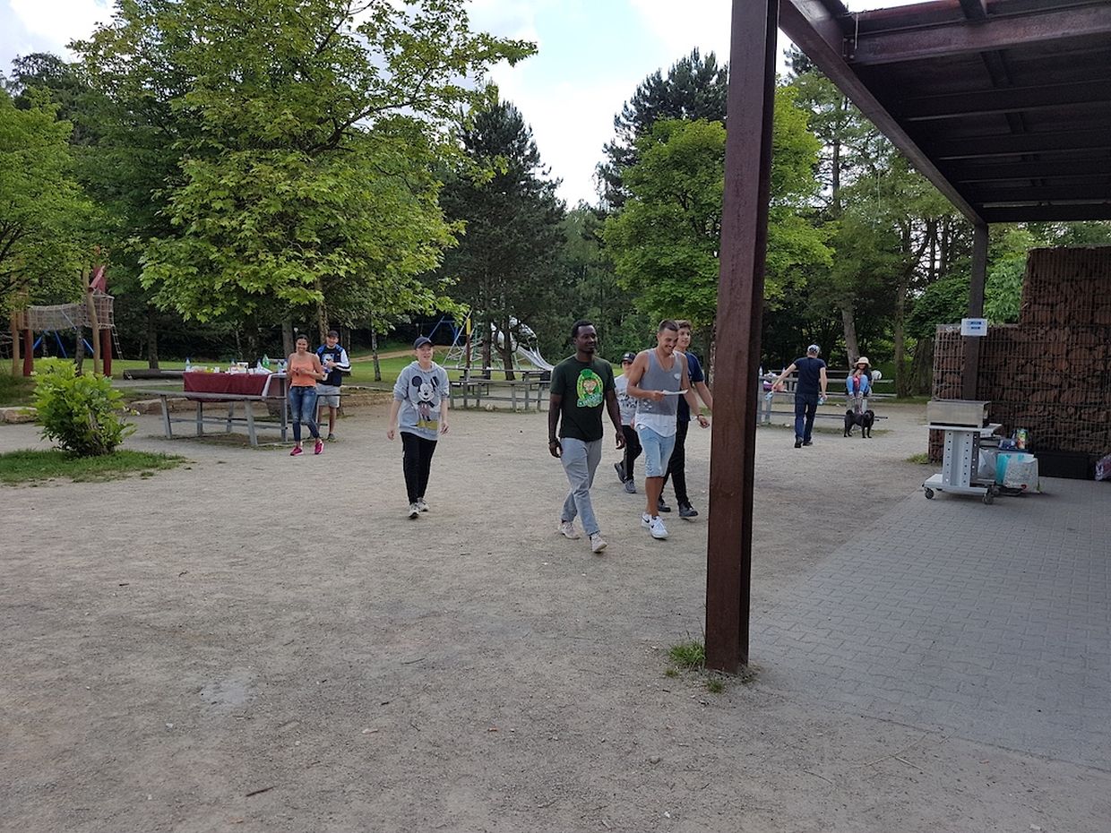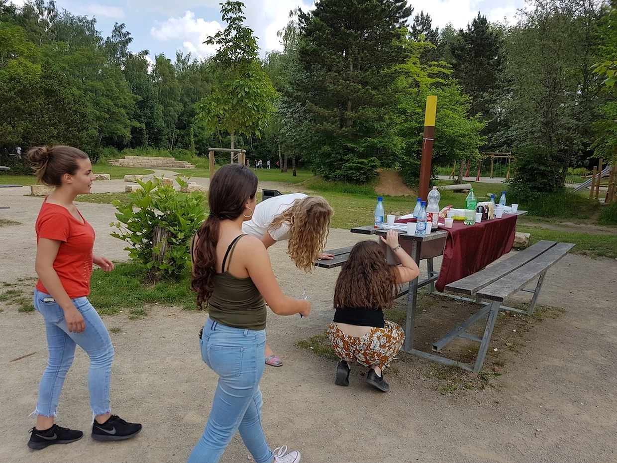 La journée a débuté à 11h lorsqu’un bus de la société Sales Lentz, mis gratuitement à disposition des participants, a récupéré les sans-abri, accompagnés de deux éducateurs de Caritas, à Bonnevoie avant de passer par le LTE prendre les élèves et leurs accompagnateurs pour se rendre au Galgebierg de Belvaux où d’autres enseignants s’attelaient à tout mettre en place afin d’accueillir les convives.