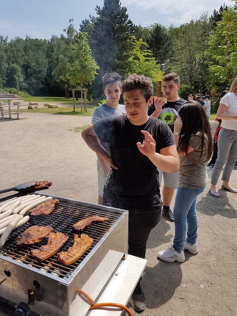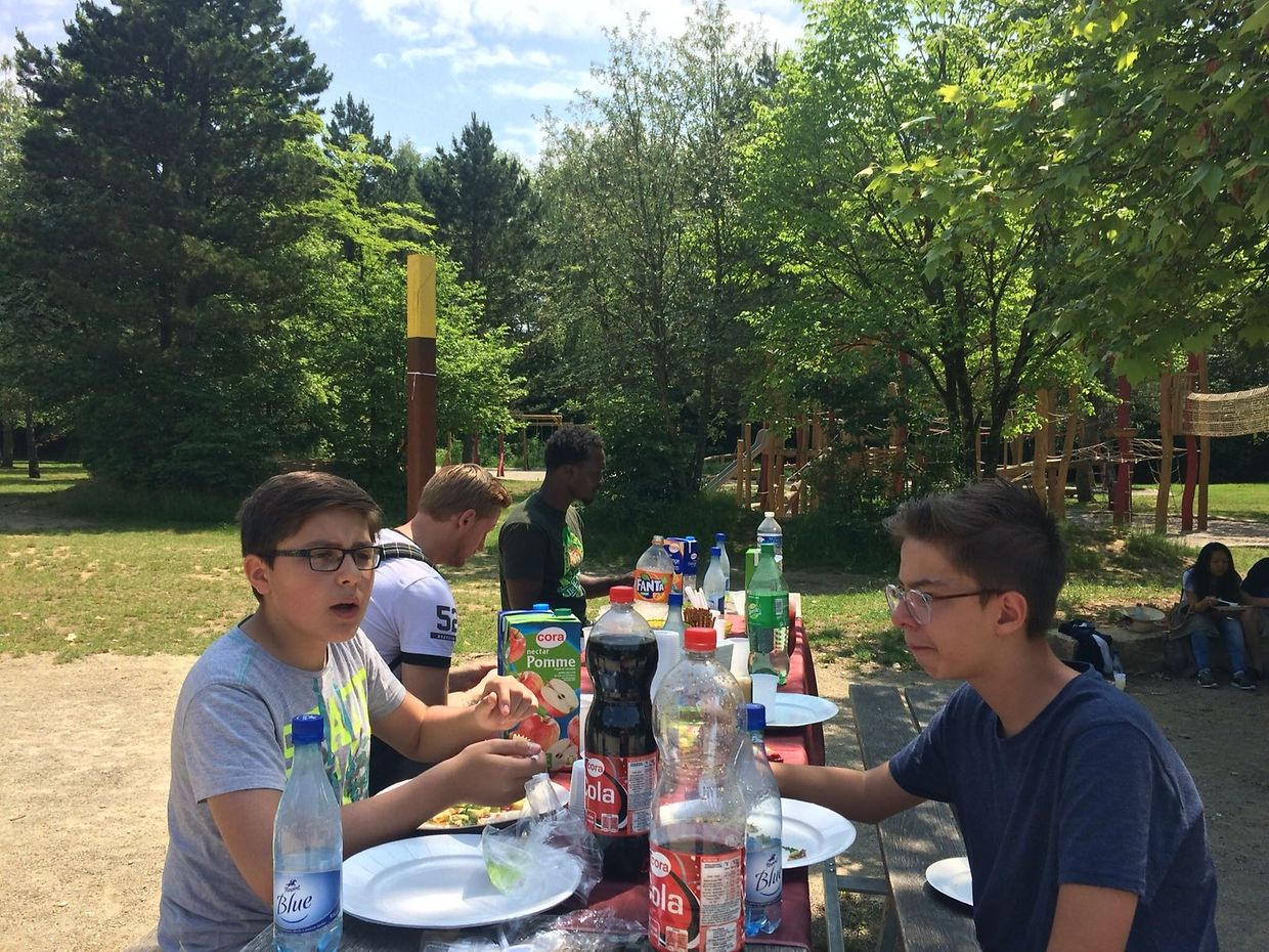 L’activité « Générosité » a comme valeurs le partage et l’entraide. L’une des bonnes actions de ce dernier trimestre était de profiter d’un après-midi ensoleillé pour passer du temps avec les plus démunis autour d’un barbecue entièrement financé par Cora Foetz. Les élèves inscrits à l’activité ainsi que les élèves des classes mosaïques, se sont occupés des salades et des desserts.
