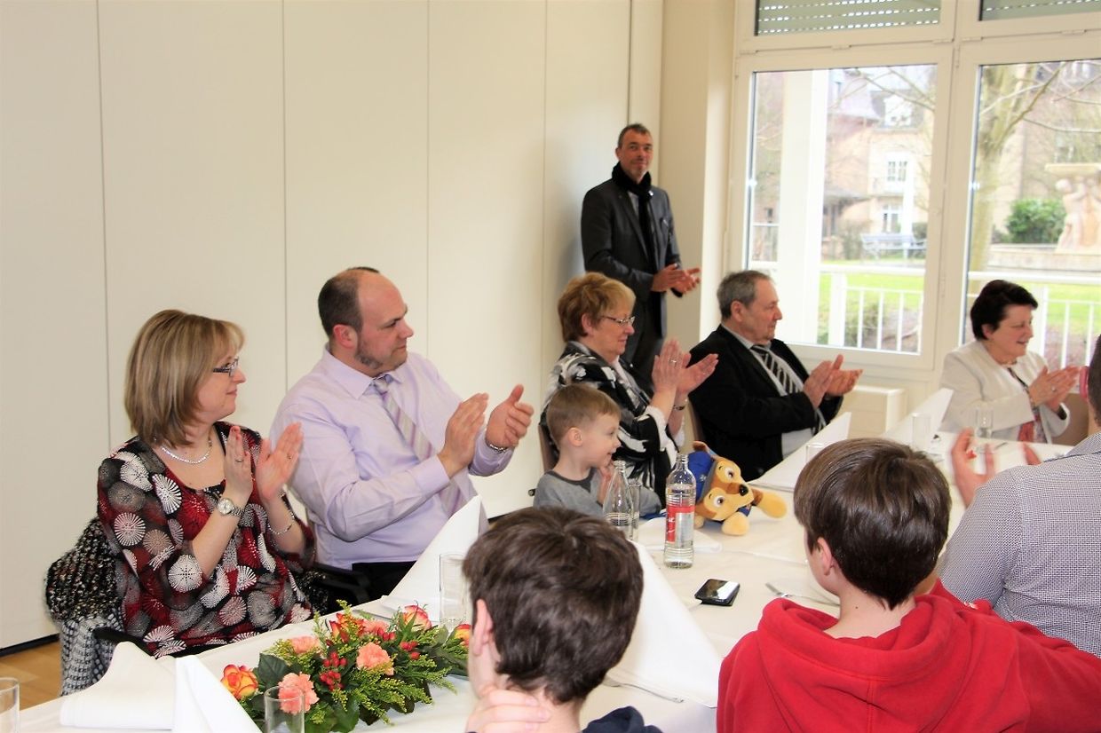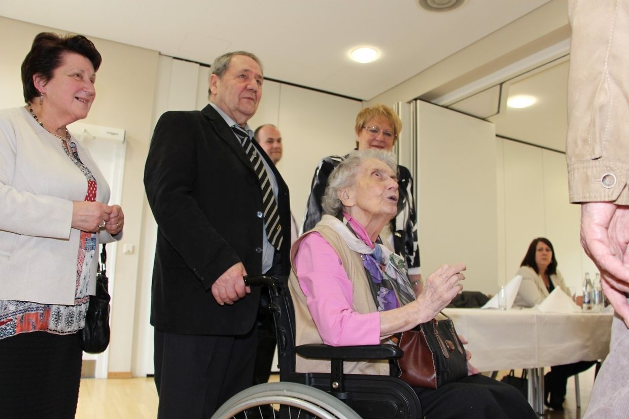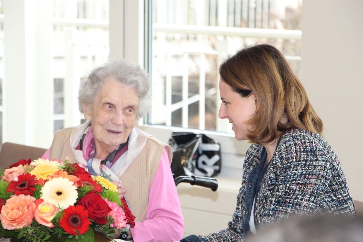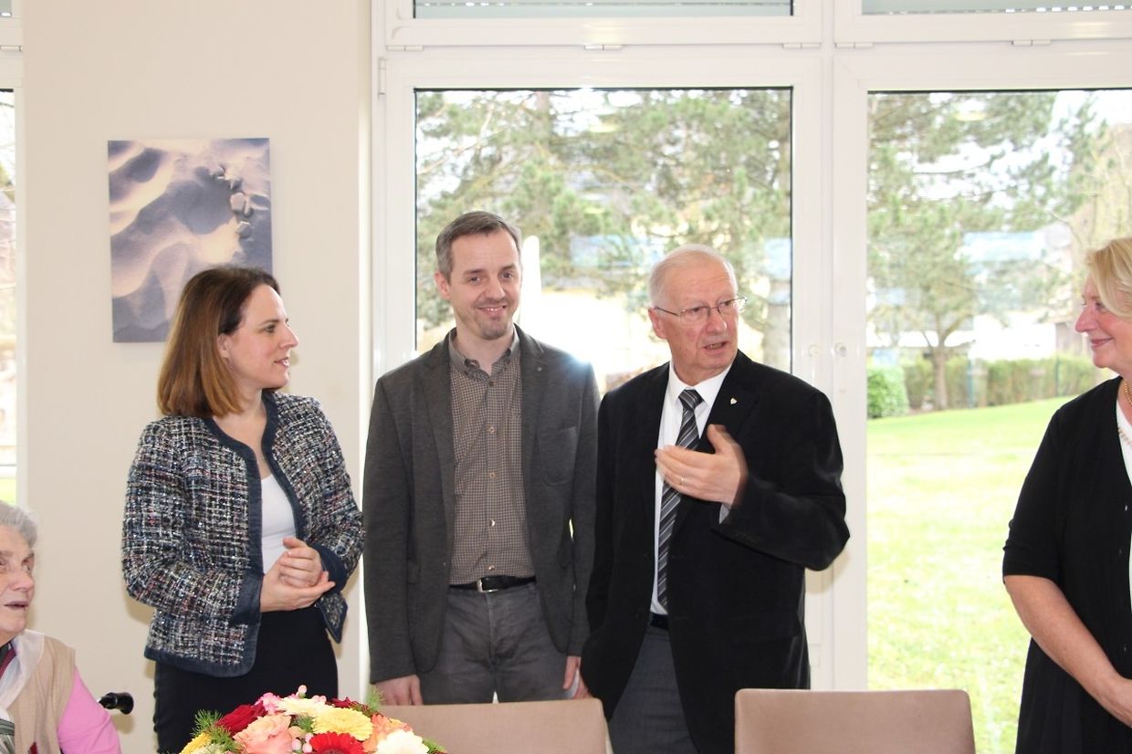 Den allgemeinen Glückwünschen schlossen sich der Direktionsbeauftragte Claude Gerin und die Amicale-Präsidentin Arlette Braun an. Marcel Bossi überbrachte die besten Wünsche seitens der Generaldirektion. Lucie Limpach ihrerseits gratulierte der Jubilarin im Namen der Bewohner der Senioreneinrichtung.