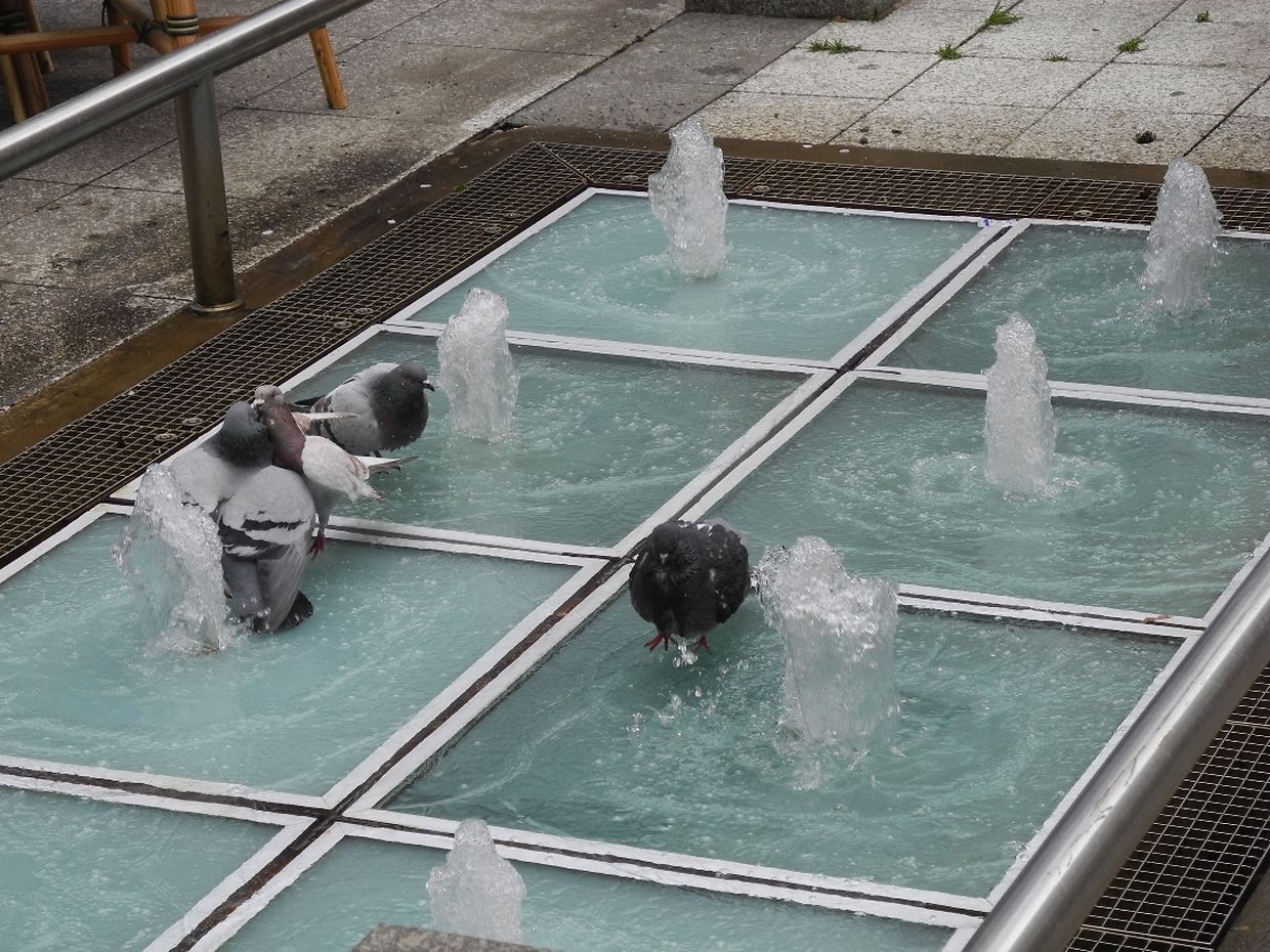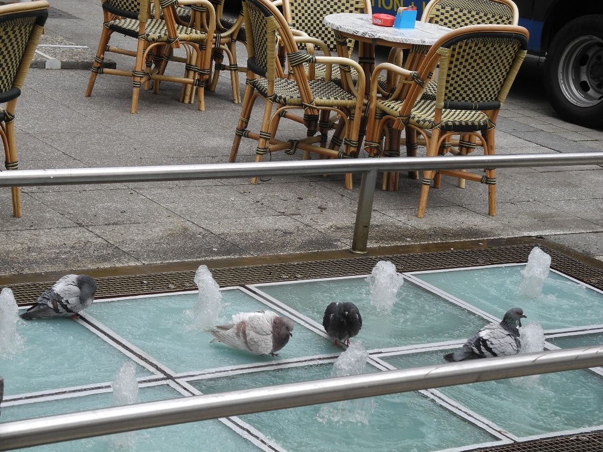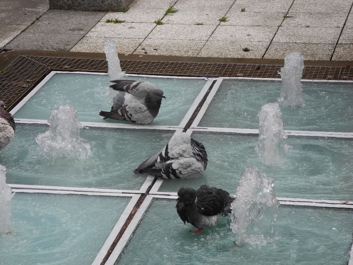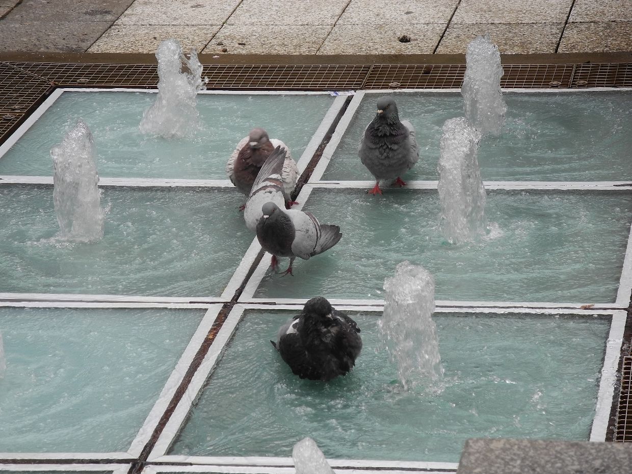 In Luxemburgs längster Fußgängerzone, der Alzettestraße in Esch/Alzette sorgte eine kleine Gruppe Tauben dieser Tage für die Belustigung der Fußgänger, als sie sich über die Wiederinbetriebnahme der Springbrunnenanlage freute und diese auch sogleich zum obligaten Frühjahrsbad nutzte.