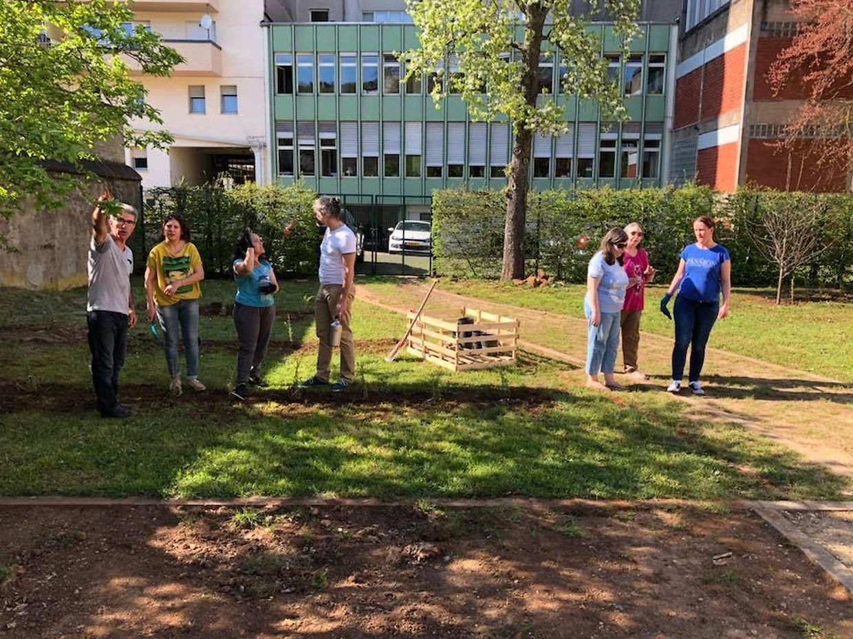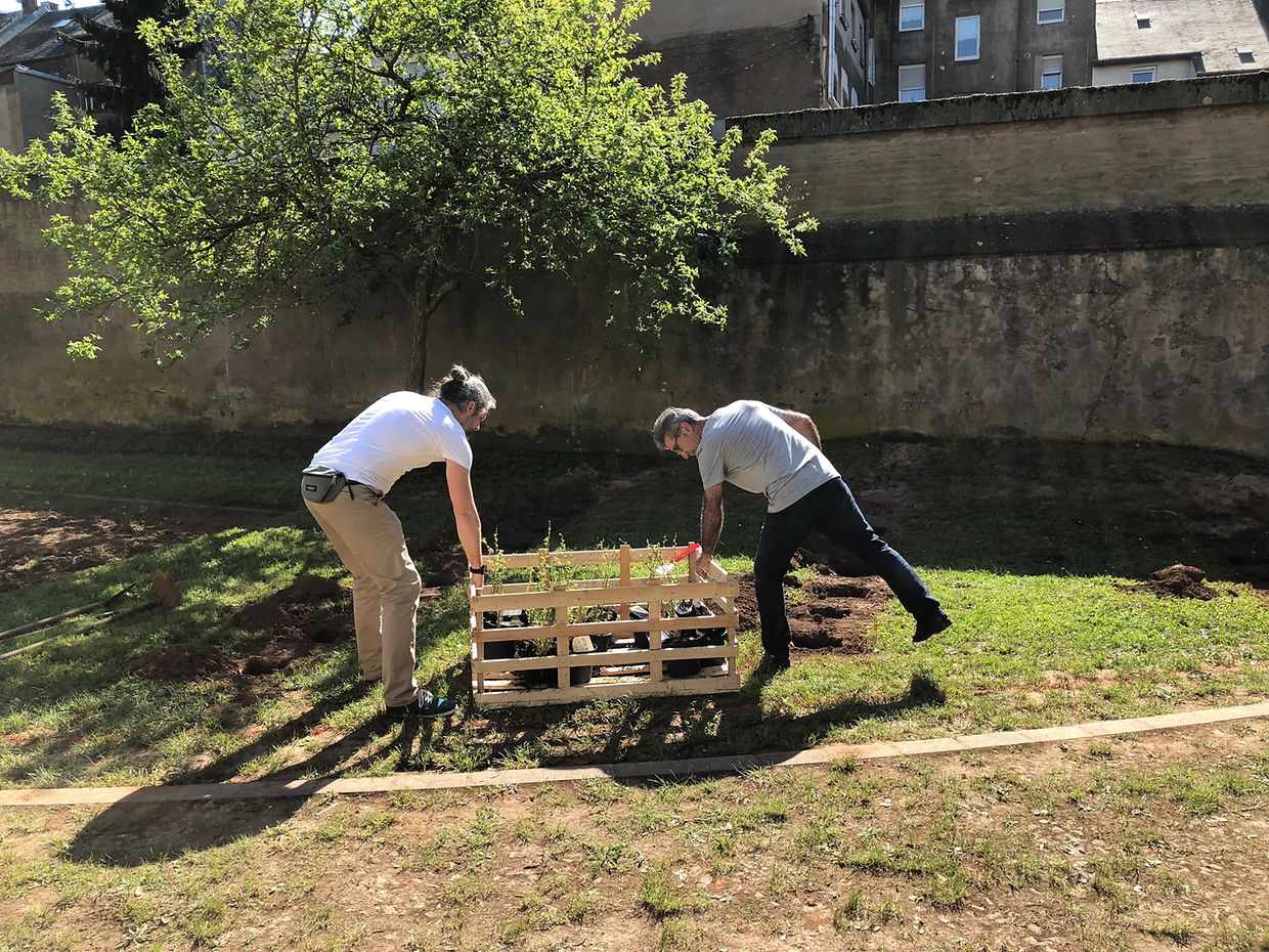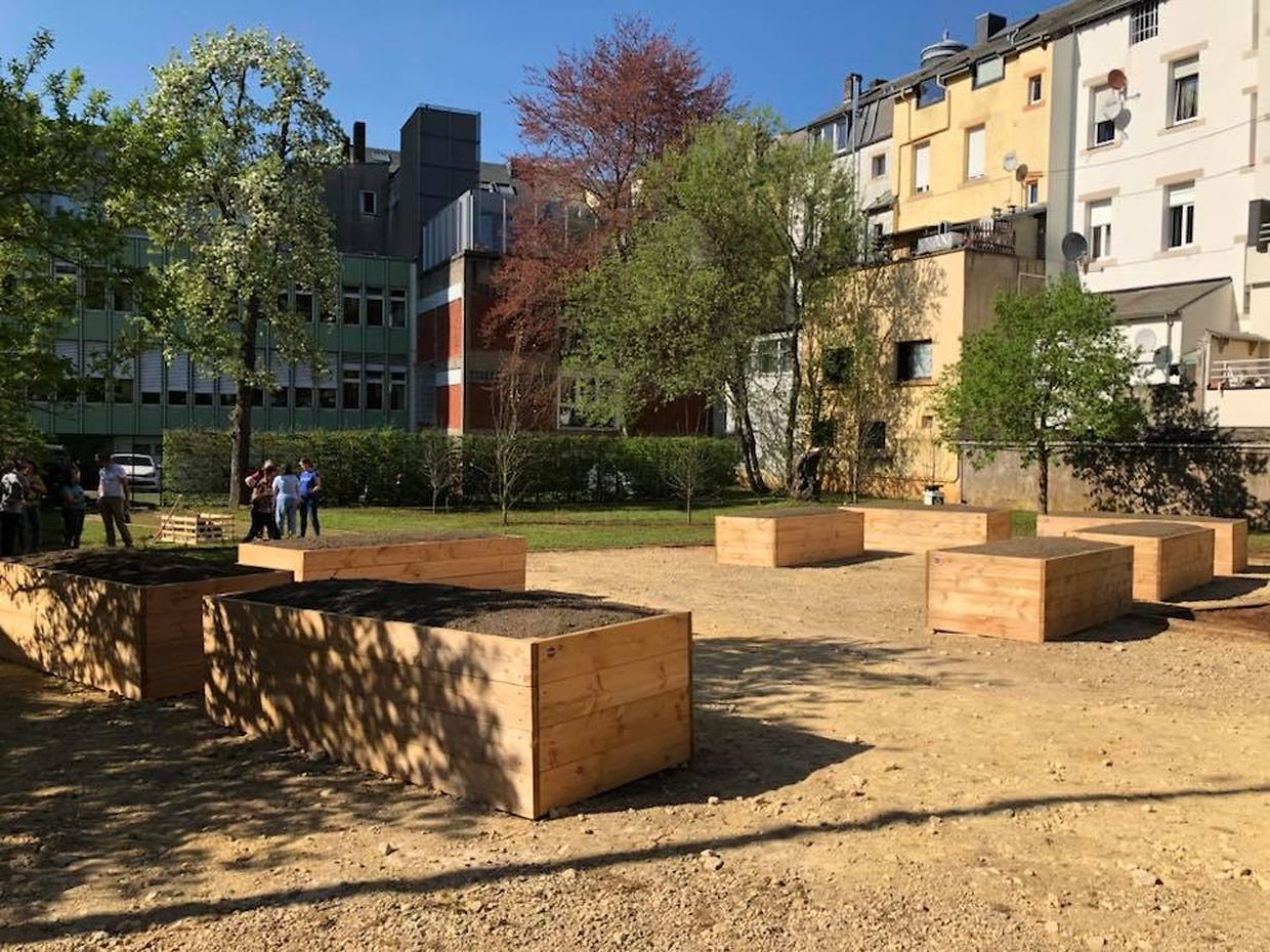 Le jeudi 19 avril 2018, une dizaine d'habitants des quartiers Al Esch, Brill et Grenz se sont rassemblés au "Cockerills Parc" (120, bd. J. F. Kennedy à Esch-sur-Alzette) afin de commençer l'aménagement de leur nouveau jardin communautaire. Avec le soutien de la commune d'Esch, des arbres fruitiers, des haies fruitières ainsi que des bacs à hauteur (Hochbeet) ont pu être plantés et installés avec les habitants. A cette première rencontre suivront d'autres pendant lesquelles l'aménagement du jardin sera poursuivi. Nous visons, à long terme, une autonomie totale des habitants en ce qui concerne l'aménagement et l'entretien (nettoyage des bacs, arrosage des plantes, propreté des lieux, récolte des légumes, sensibilisation des habitants, ...) du jardin. Ce projet est né suite à l'initiative du service Ensemble Al Esch-Brill-Grenz qui a pu trouver un accord d'utilisation du "Cockerills Parc" avec le propriétaire des lieux qui est le Fond du logement et présente de nombreux atouts et bienfaits aux habitants: La plantation de cet espace, jusque là inutilisé, le valorise et donne un autre aspect au quartier. De plus, l'endroit est un nouveau lieu de rencontre pour les habitants du quartier, il permet de créer une plate forme d’échange entre les divers habitants et leurs cultures et permet de nouveaux contacts sociaux entre les habitants. D’autant plus les habitants profitent de la plantation des légumes et savent les utiliser pour cuisiner.