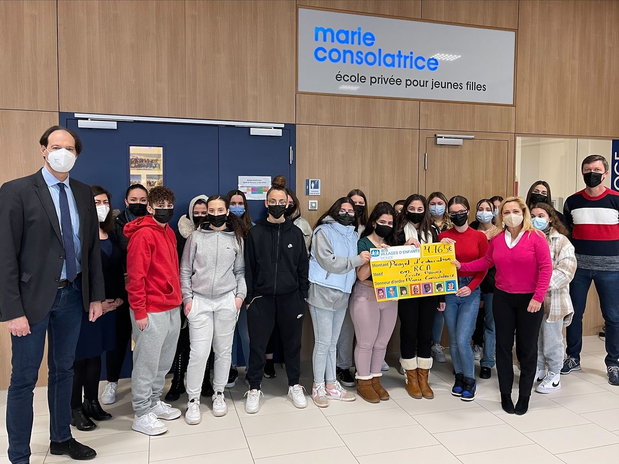 Esch-sur-Alzette - L’Ecole Privée Marie-Consolatrice (EPMC) s’est engagée en faveur de SOS Villages d’Enfants Monde à l’occasion des fêtes de fin d’année. Comme de coutume, élèves et personnel ont organisé un marché de Noël dans leur école. Il s’est tenu le 27 novembre dernier et a permis de récolter des fonds pour deux associations dont la nôtre. En ce début 2022, l’école vient de nous remettre un chèque de 4.765€ qui seront attribués à notre projet d’éducation en développement dans une école publique située dans les environs de Bangui en République centrafricaine. A terme, des milliers d’élèves très vulnérables y bénéficieront d’une éducation de qualité dans un cadre d’apprentissage protecteur. Nous remercions vivement l’EPMC, en particulier ses élèves pour leur implication et leur bel élan de générosité.