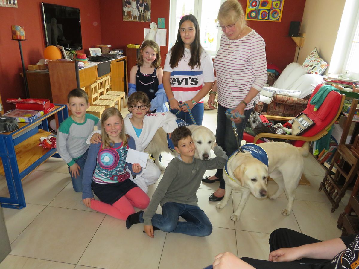 Si hu beschloss dass des Suen fir d’Asa sollten sinn. Si hu ganz houfreg virun Kuerzem eng Enveloppe iwwerräicht, mat 200€ dran. Den Exi an den Lions, zwéi Assistenzhonn , hunn hinnen e bëssen gewisen, wat esou een Hond alles kann.