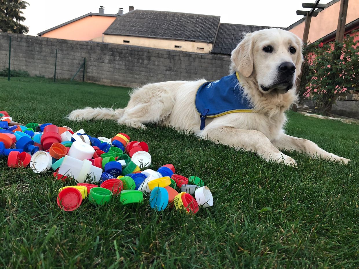 Eng solidaresch Aktioun fir Assistenzhonn ze finanzéieren an duerch Recycling vu Plastik d’Ëmwelt ze schützen: eng Tonn Plastikstepp ass glaich eng Tonn Grondressourcen, Pëtrol.