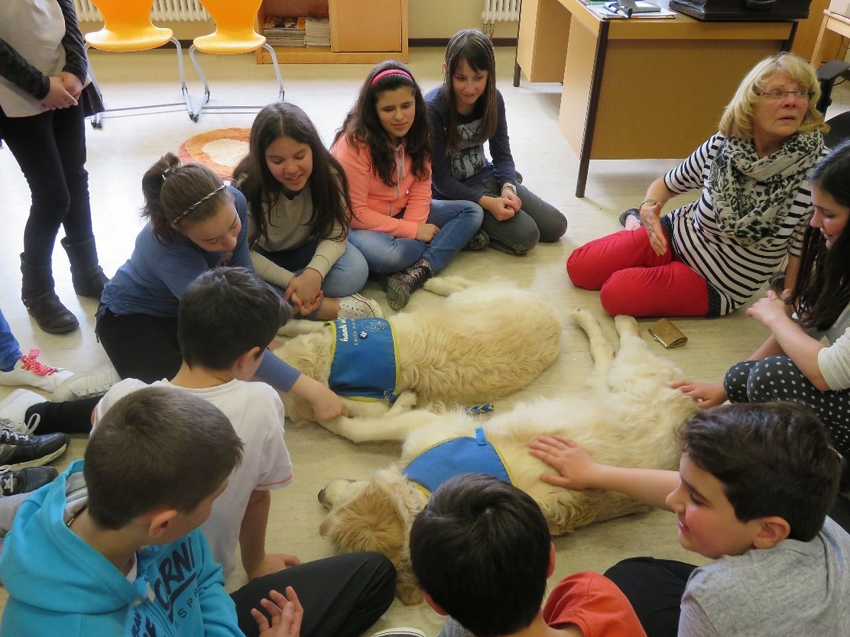 Die beiden Assistenzhunde Vistou und Exi haben ihr Können unter Beweis gestellt und wurden mit Applaus und vielen Streicheleinheiten seitens der Kinder belohnt.