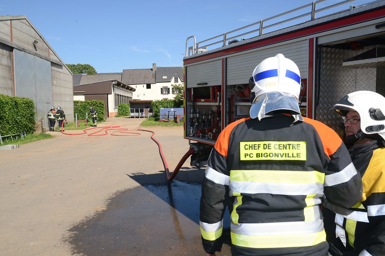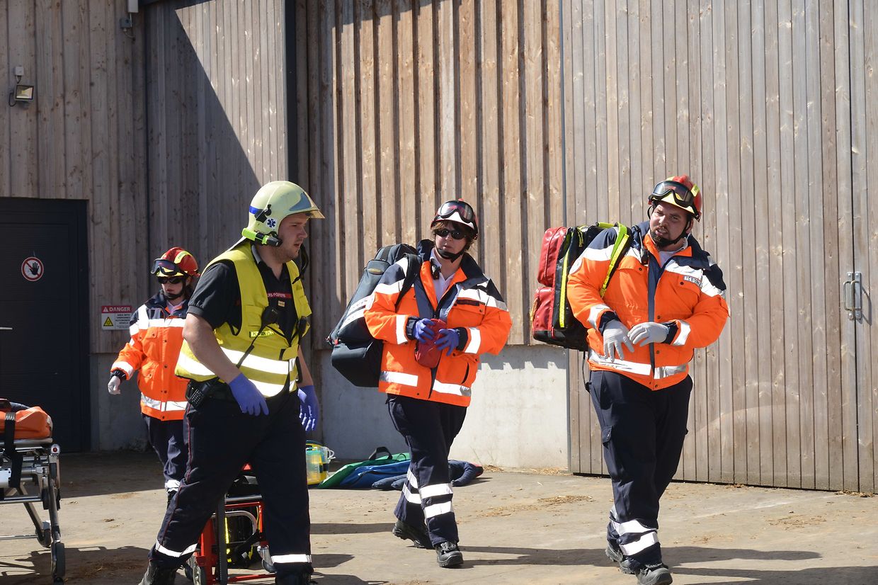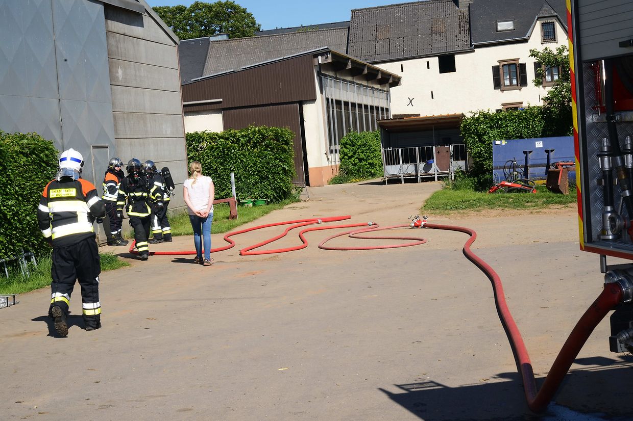 Eschette: Als Brandobjekt hatte Patrick Schuller, Korpschef der freiwilligen Feuerwehr aus der Gemeinde Rambrouch den Bauernhof Binck in Eschette ausgesucht. „Wenn es dort einmal brennt“! war die Frage! Denn die Wasserversorgung vor Ort kann nur aus dem Hydranten, der aber nur für den Erstangriff gut ist, entnommen werden. Die nächste Wasserentnahmestelle ist der Bach, rund 800 Meter entfernt und so muss man mit gleich zwei Tragkraftspritzenpumpen vom Typ 16/8, das Wasser bis zur Brandstelle fördern. Das Szenario: In der Werkstatt des Betriebes entstand ein Kurzschluss wo sich dann schlagartig das ausgelaufene Oel und Benzin entzündete und das Feuer auf die gelagerten Heubotten übergriff. Zwei Erwachsene und zwei Kinder sowie eine Person mit Rückenverletzung mussten geborgen werden. Eine Gefahr mussten die Einsatzkräfte nicht aus den Augen verlieren, das waren die Solarzellen auf dem Scheunendach die, im Falle eines Brandes, nicht mit Wasser in Berührung kommen durften. Gleich nach dem Eintreffen der beiden Tanklöschfahrzeuge begaben sich die Atemschutzträgermannschaften zum Erstangriff des Brandobjektes und zur Bergung der Verletzten in den mit viel Rauch gefüllten Raum. Diese Bergung erfolgte gleich mit Erfolg und wurden den Sanitätern des Zivilschutzes aus Bigonville sofort zur Erstversorgung übergeben. Da das Feuer auf weitere Gebäude übergreifen drohte und sich zu einem Vollbrand zu entwickeln könnte, wurde der hintere Teil des Gebäudes durch eine zweite Mannschaft abgeschirmt. Nach einer guten anderthalb Stunden hieß es „Wasser halt“ für die rund 20 Einsatzkräfte. Bei der anschließenden Manöverkritik wurden noch verschiedenes angesprochen, was im Ernstfall noch verbessert werden kann. (CR)(FOTOS: CHARLES REISER)