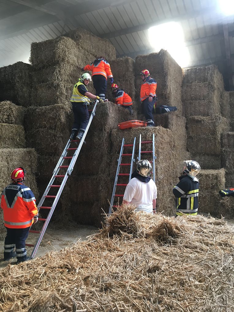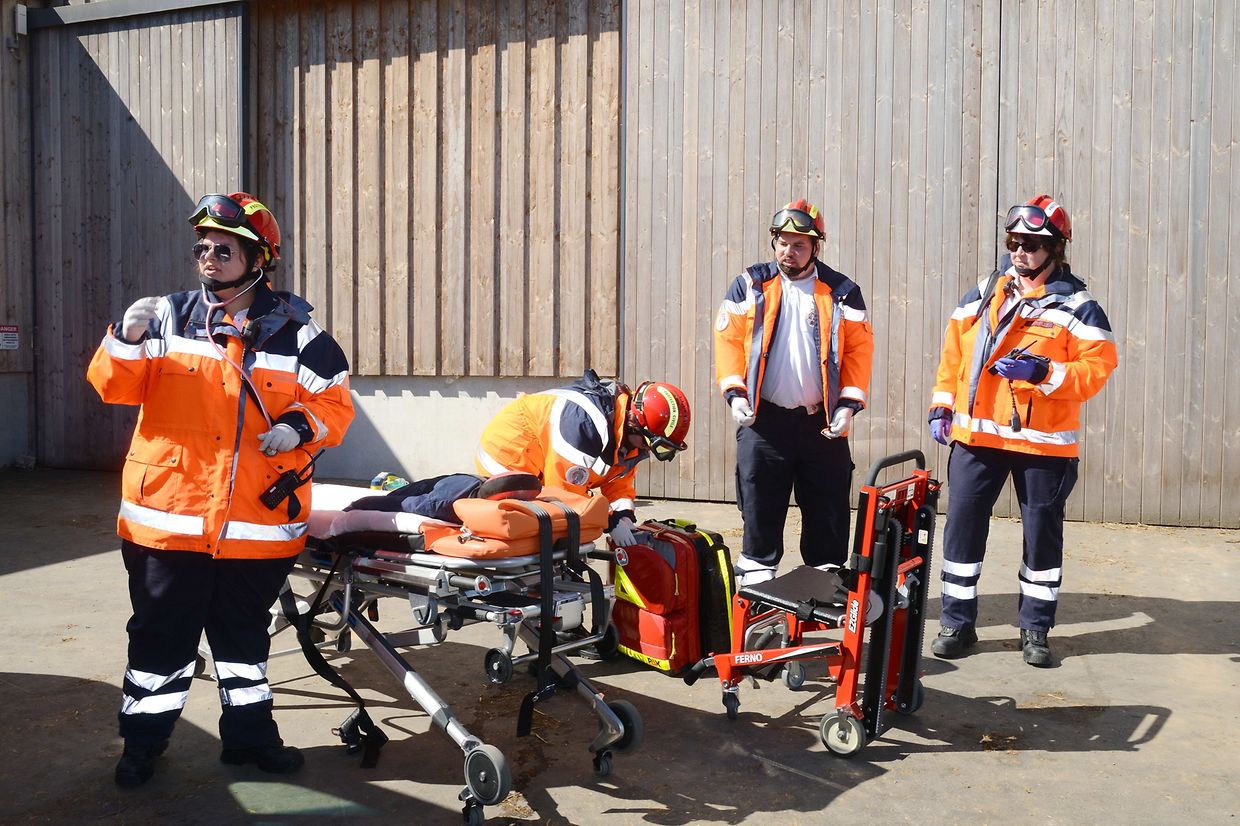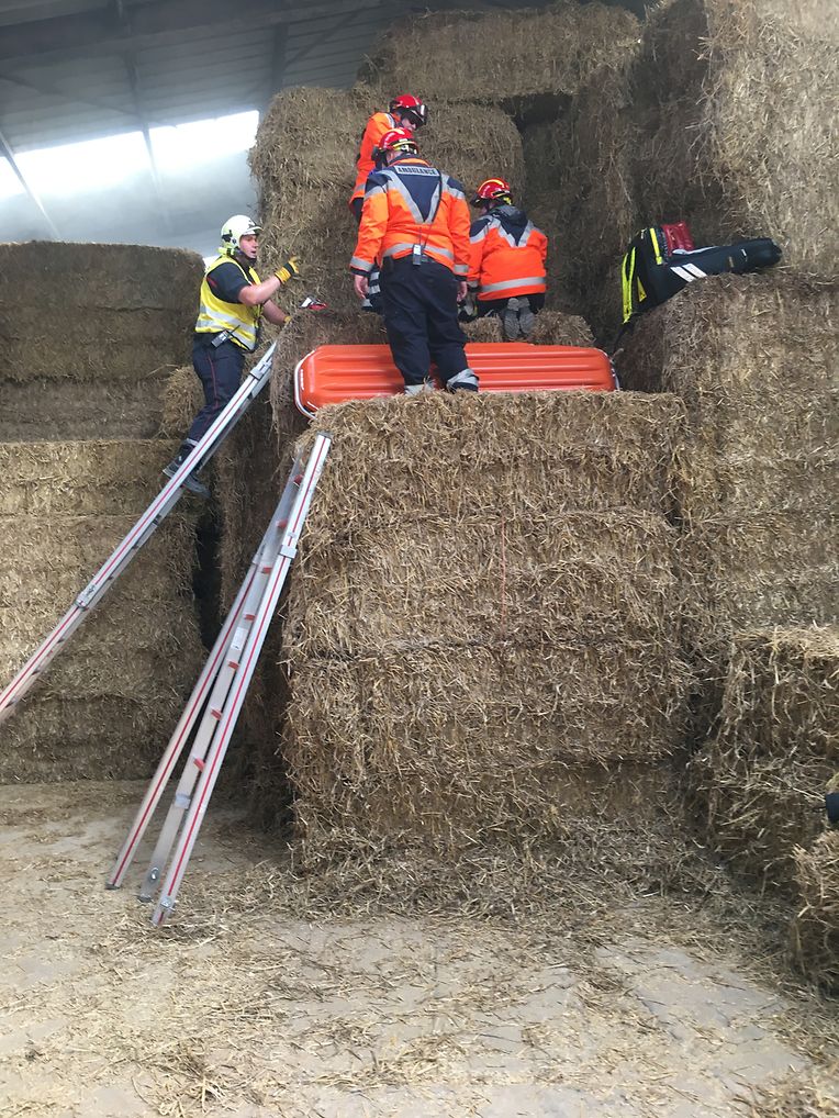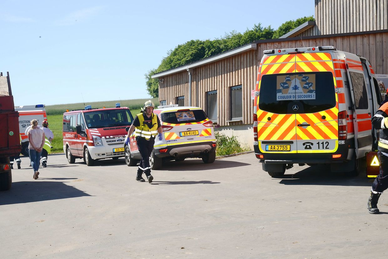 Eschette: Als Brandobjekt hatte Patrick Schuller, Korpschef der freiwilligen Feuerwehr aus der Gemeinde Rambrouch den Bauernhof Binck in Eschette ausgesucht. „Wenn es dort einmal brennt“! war die Frage! Denn die Wasserversorgung vor Ort kann nur aus dem Hydranten, der aber nur für den Erstangriff gut ist, entnommen werden. Die nächste Wasserentnahmestelle ist der Bach, rund 800 Meter entfernt und so muss man mit gleich zwei Tragkraftspritzenpumpen vom Typ 16/8, das Wasser bis zur Brandstelle fördern. Das Szenario: In der Werkstatt des Betriebes entstand ein Kurzschluss wo sich dann schlagartig das ausgelaufene Oel und Benzin entzündete und das Feuer auf die gelagerten Heubotten übergriff. Zwei Erwachsene und zwei Kinder sowie eine Person mit Rückenverletzung mussten geborgen werden. Eine Gefahr mussten die Einsatzkräfte nicht aus den Augen verlieren, das waren die Solarzellen auf dem Scheunendach die, im Falle eines Brandes, nicht mit Wasser in Berührung kommen durften. Gleich nach dem Eintreffen der beiden Tanklöschfahrzeuge begaben sich die Atemschutzträgermannschaften zum Erstangriff des Brandobjektes und zur Bergung der Verletzten in den mit viel Rauch gefüllten Raum. Diese Bergung erfolgte gleich mit Erfolg und wurden den Sanitätern des Zivilschutzes aus Bigonville sofort zur Erstversorgung übergeben. Da das Feuer auf weitere Gebäude übergreifen drohte und sich zu einem Vollbrand zu entwickeln könnte, wurde der hintere Teil des Gebäudes durch eine zweite Mannschaft abgeschirmt. Nach einer guten anderthalb Stunden hieß es „Wasser halt“ für die rund 20 Einsatzkräfte. Bei der anschließenden Manöverkritik wurden noch verschiedenes angesprochen, was im Ernstfall noch verbessert werden kann. (CR)(FOTOS: CHARLES REISER)